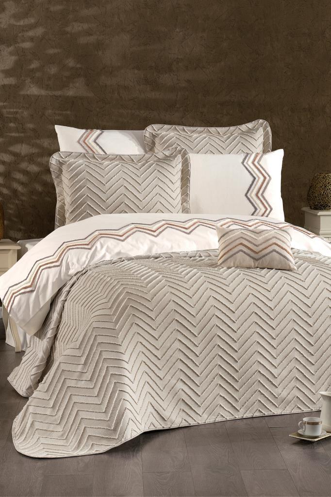Nevresim takımı Akfil kumaştan üretilmiştir. Pike ve Pike kırlent kılıfları Şönil Kumaştan üretilmiştir.