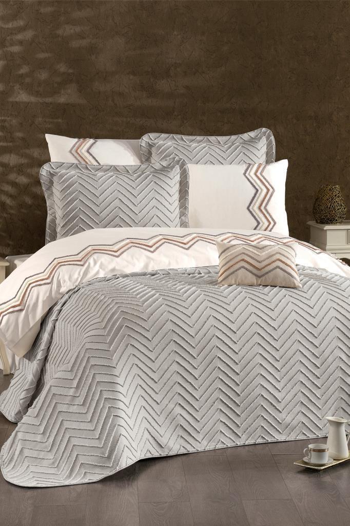 Nevresim takımı Akfil kumaştan üretilmiştir. Pike ve Pike kırlent kılıfları Şönil Kumaştan üretilmiştir.