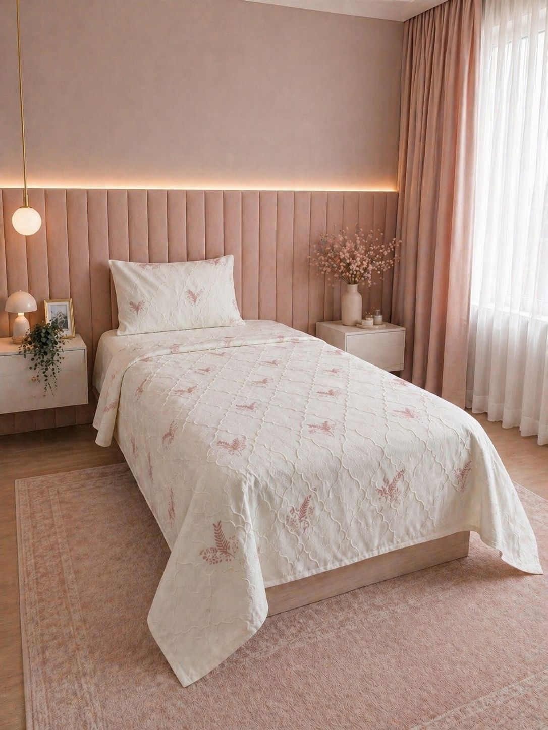 Artemis Nakışlı Şönil 2 Parça Tek Kişilik Yatak Örtüsü Pudra