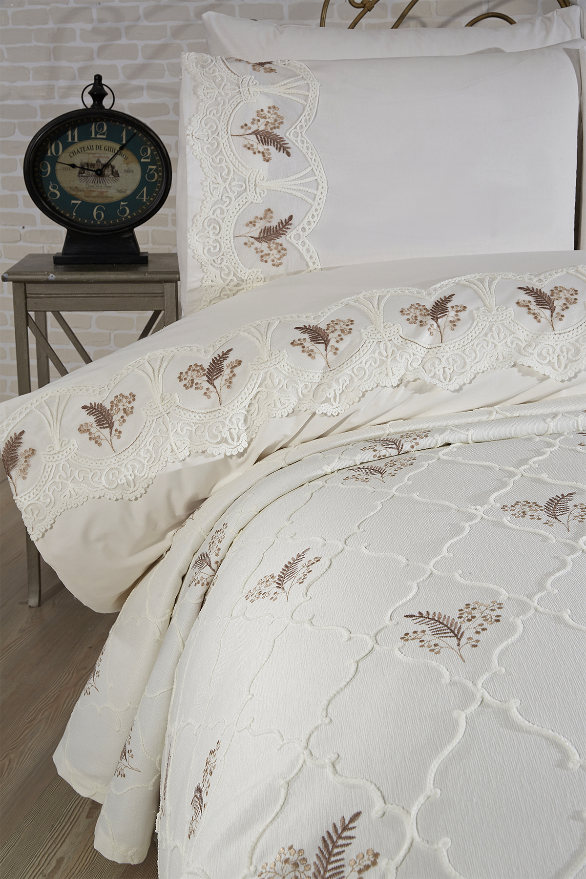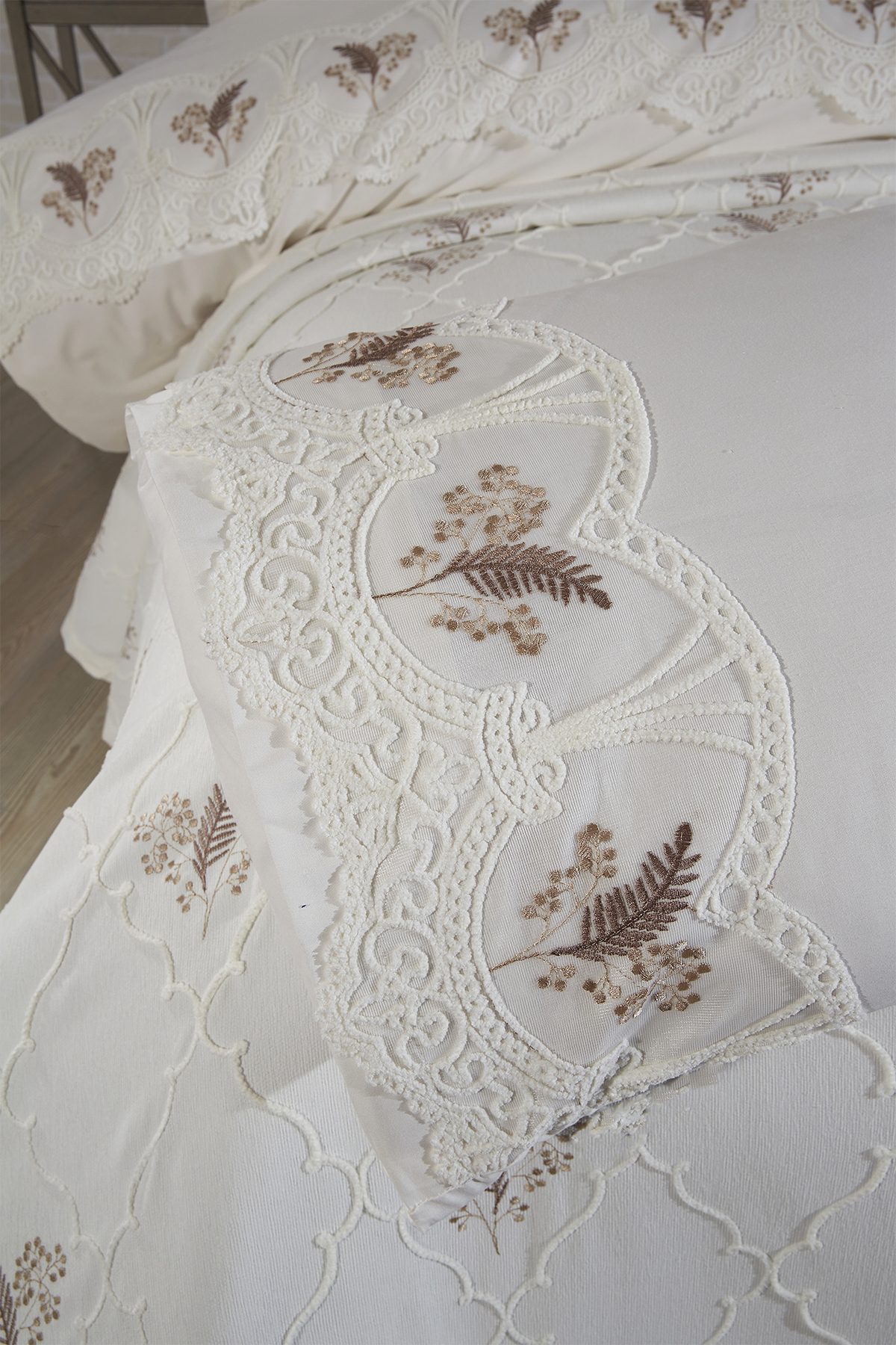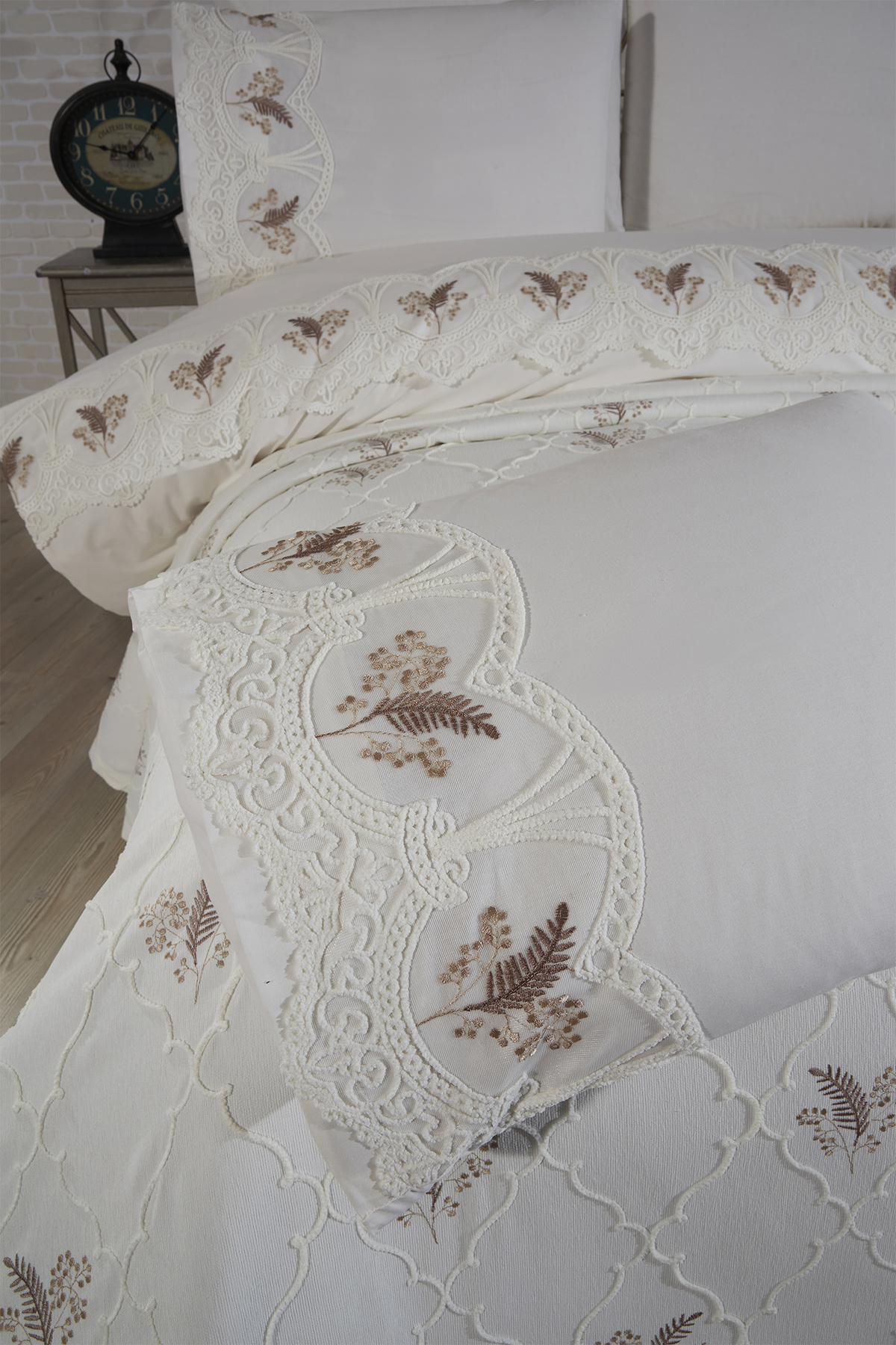 Yatak Örtüsü Şönil Kumaştan üretilmiştir. Nevresim takımı %100 Pamuk kumaştan üretilmiştir.