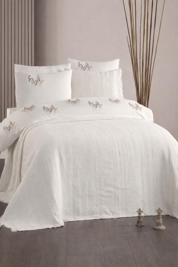 Arya 7 Parça %100 Pamuk Gelin Seti Ekru