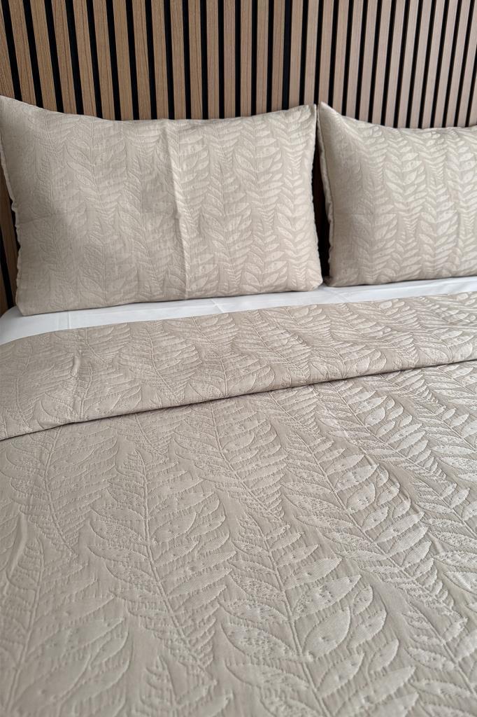 Günlük kullanımın yanı sıra çeyizlik olarak da tercih edilebilecek bu yatak örtüsü, sade ve şık tasarımıyla farklı yatak odası dekorasyonlarına kolayca uyum sağlar.
