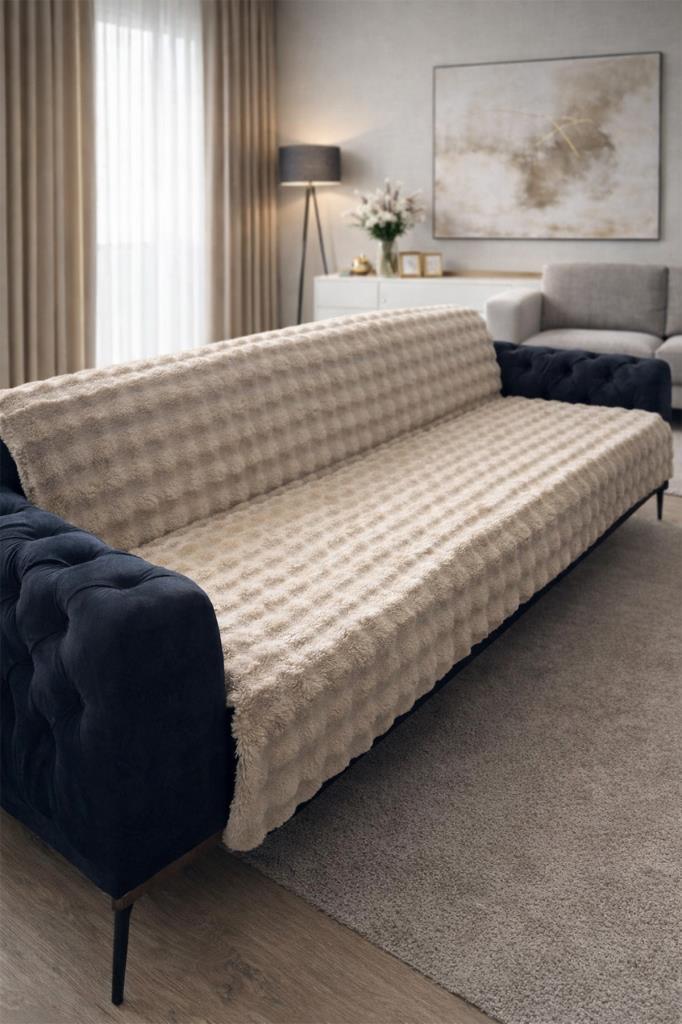 Bubble Tavşan Tüyü Kaymaz Tabanlı Koltuk Örtüsü 170x215 Cm Bej