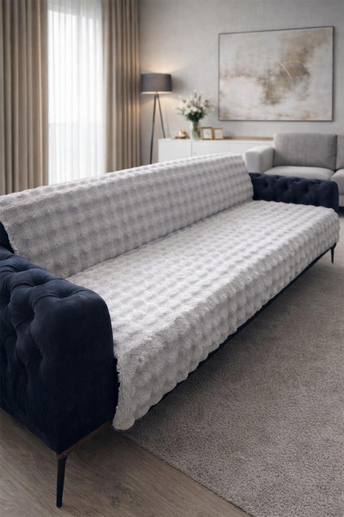 Yumuşak dokusu ve pofuduk yapısıyla yaşam alanlarınıza hem konfor hem de şıklık katan tavşan tüyü koltuk örtümüz,