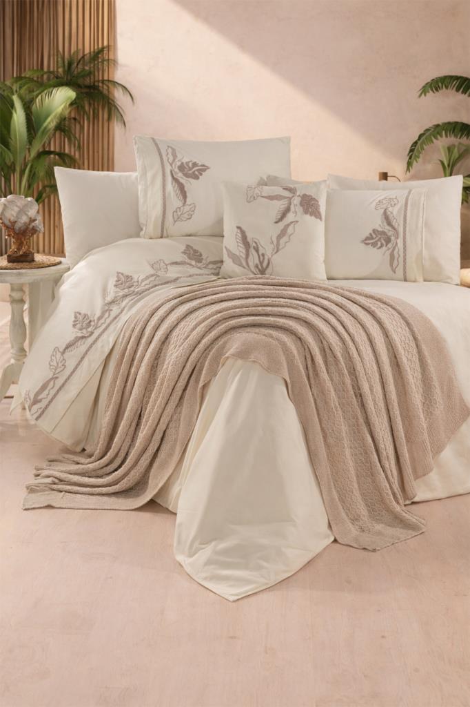 Cadis %100 Pamuk Çift Kişilik Battaniyeli Nevresim Takımı Bej