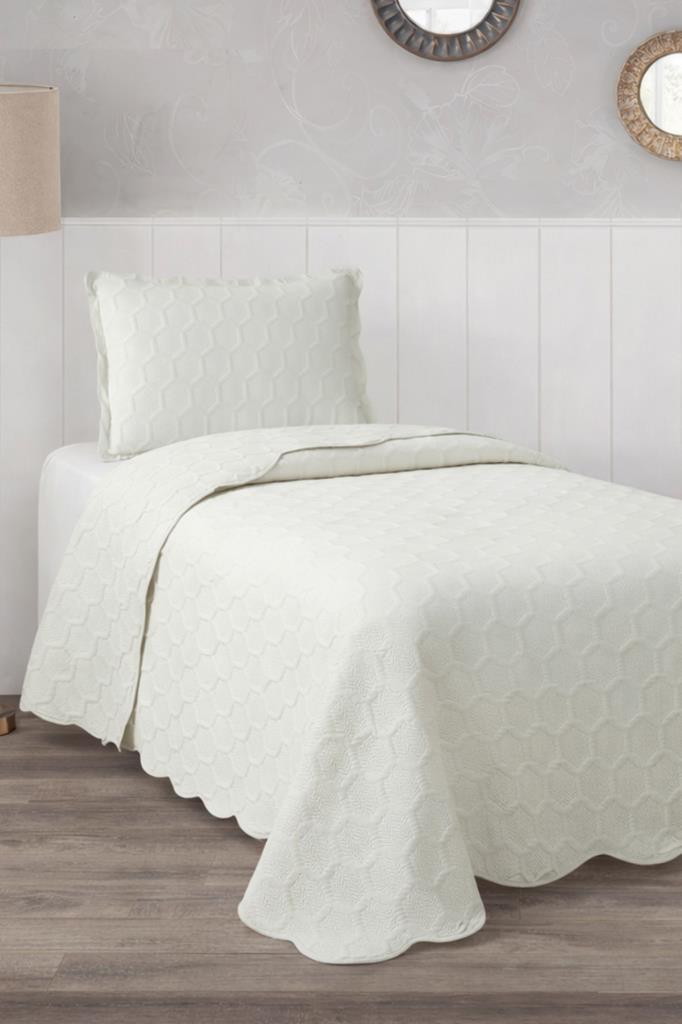 Cenevre Elyaf Dolgulu Tek Kişilik 180x240 Cm Yatak Örtüsü Krem