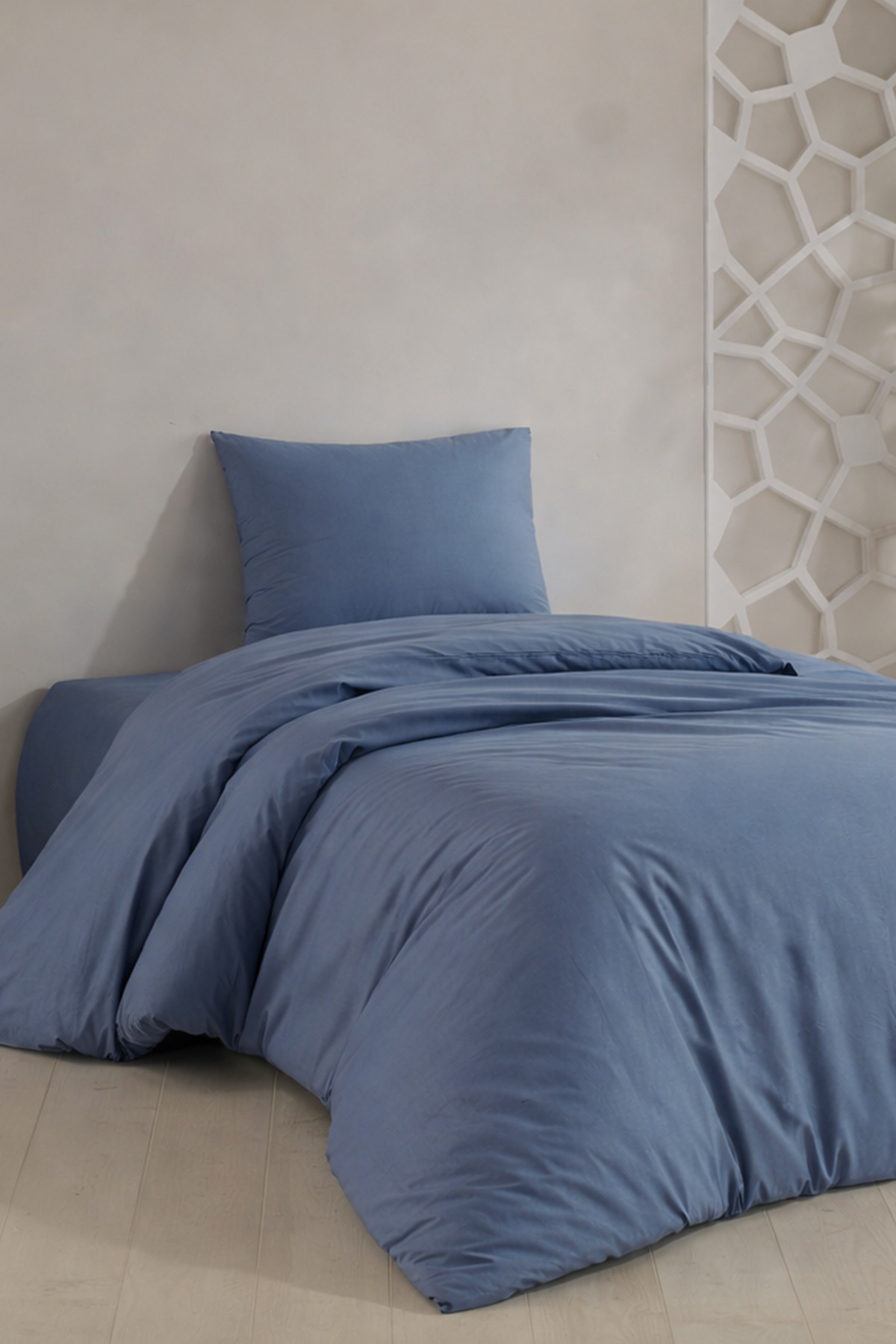Çeyiz Diyarı Almond Lastikli Çarşaflı Tek Kişilik Nevresim Takımı İndigo