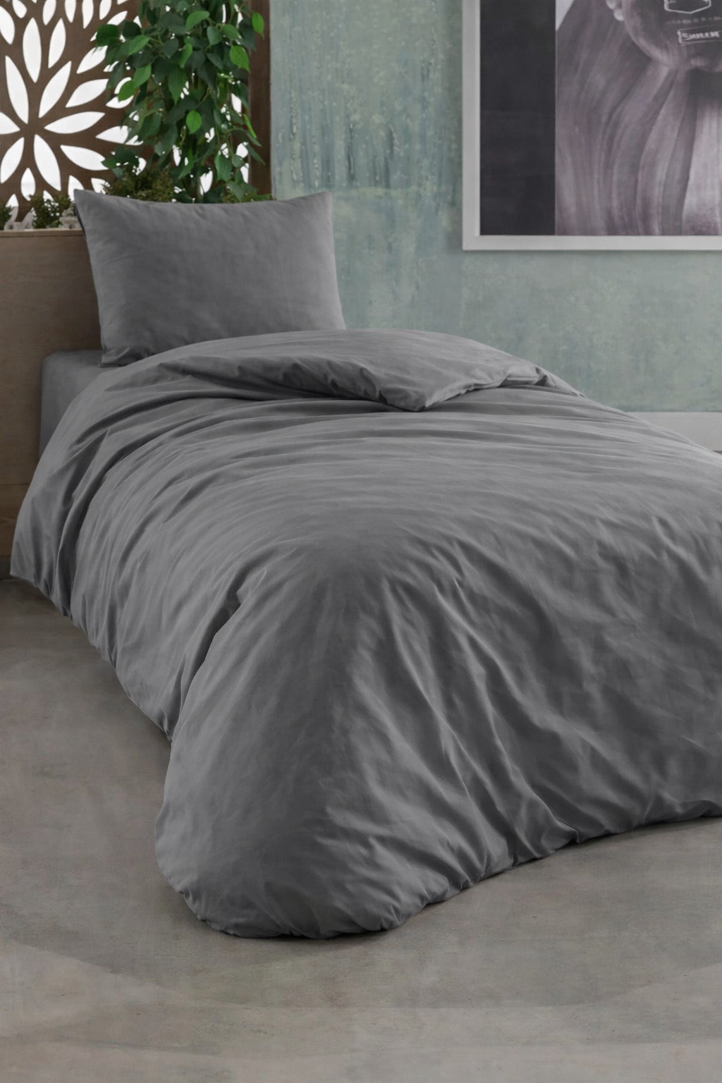 Çeyiz Diyarı Almond Lastikli Çarşaflı Tek Kişilik Nevresim Takımı Antrasit