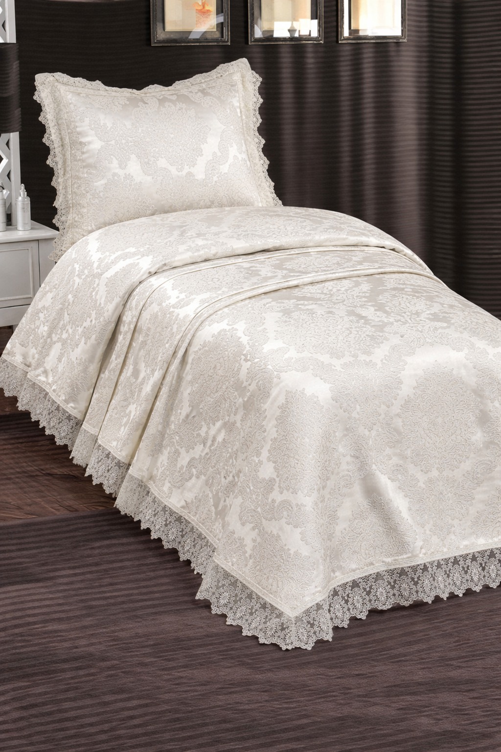 Çeyiz Diyarı Fransız Güpürlü Lunox Tek Kişilik Yatak Örtüsü Krem
