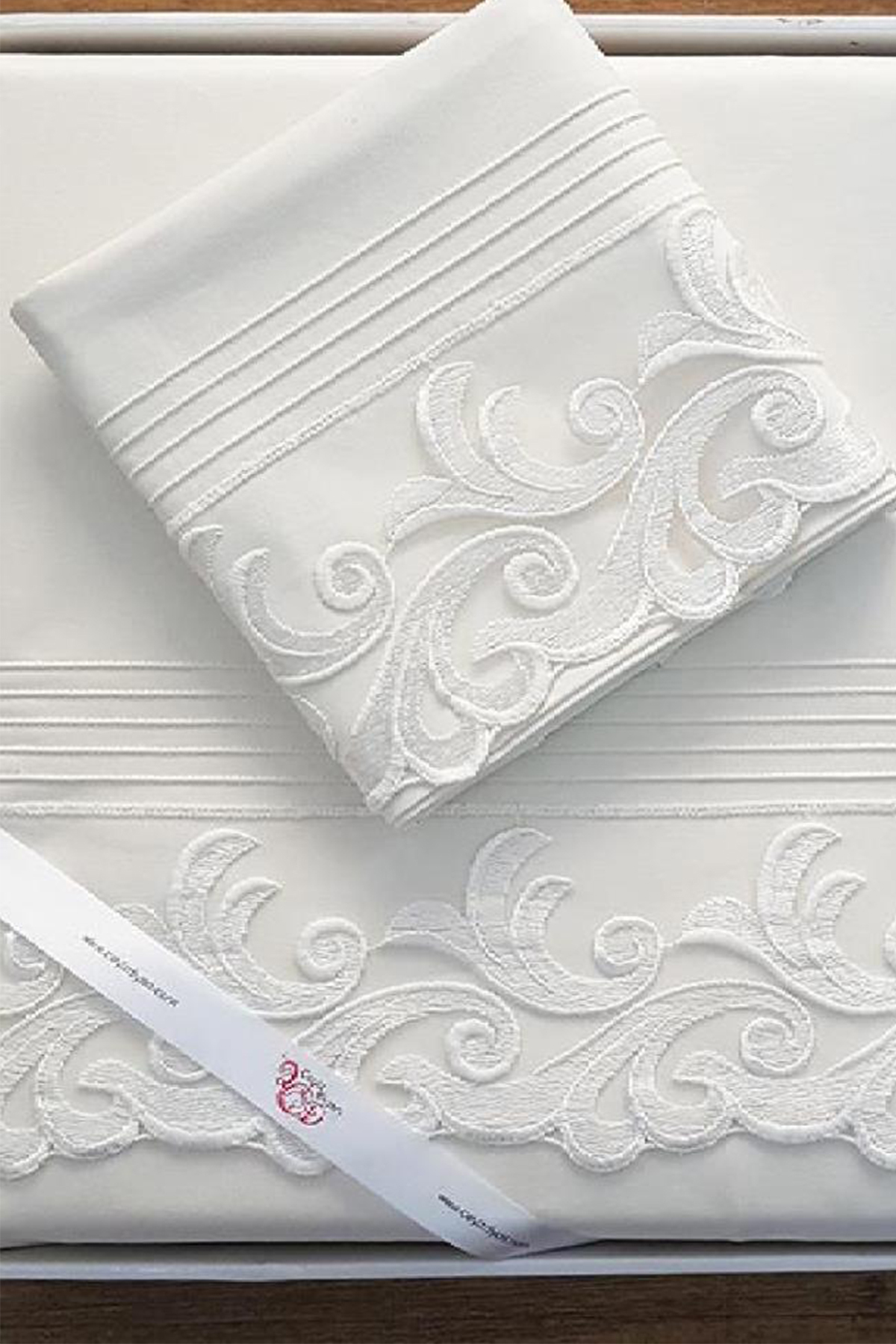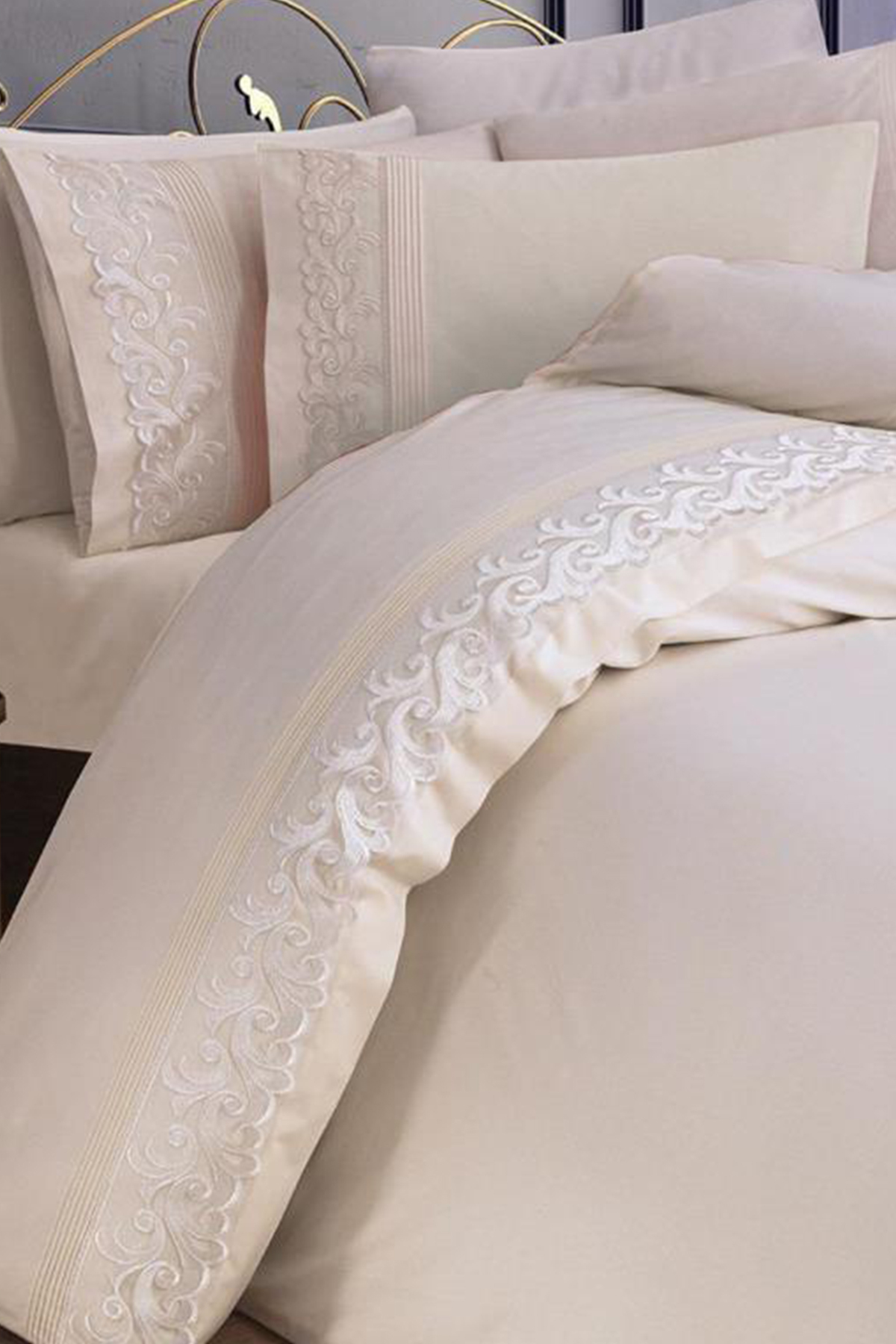 Çeyiz Diyarı Fransız Güpürlü Nervürlü Belinda Nevresim Takımı Krem