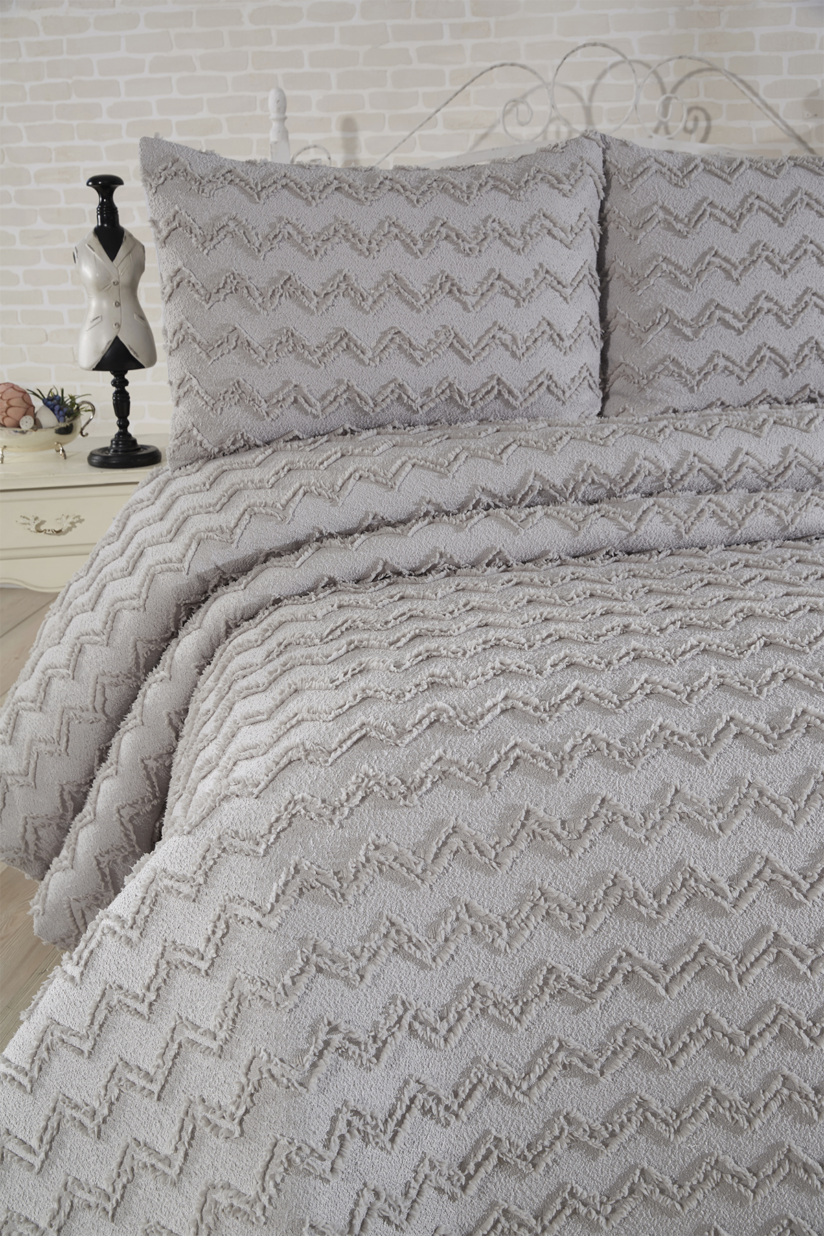 Çeyiz Diyarı Lumpa 3 Parça Çift Kişilik Pike Takımı Gri