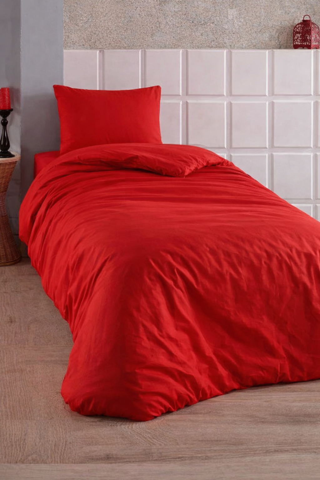 Çeyiz Diyarı Almond Lastikli Çarşaflı Tek Kişilik Nevresim Takımı Kırmızı