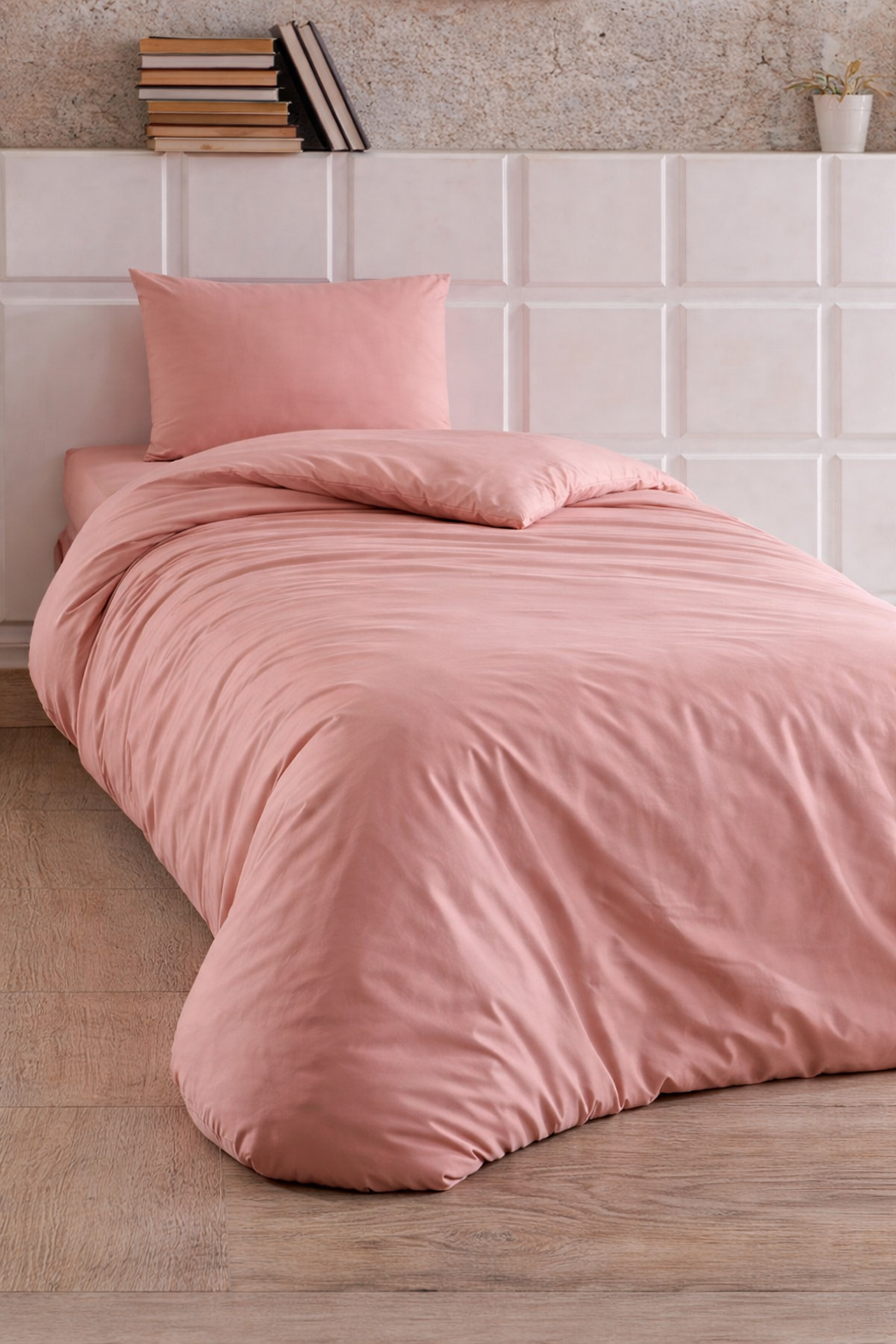 Çeyiz Diyarı Almond Lastikli Çarşaflı Tek Kişilik Nevresim Takımı Pudra