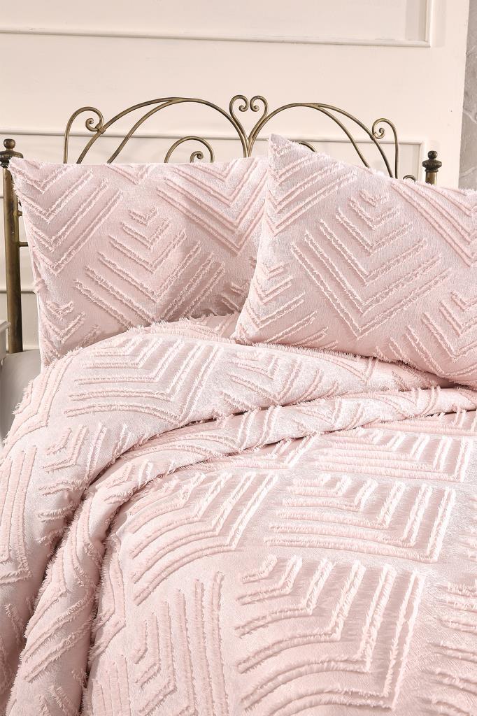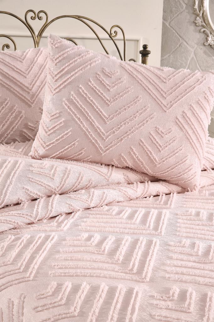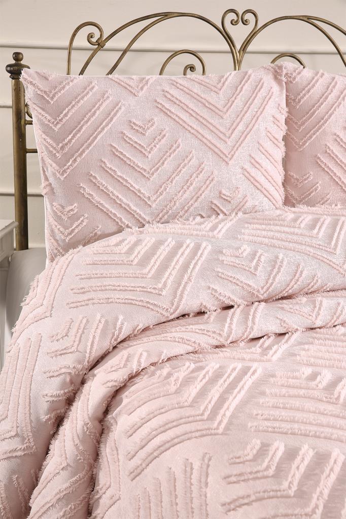 Çeyiz Diyarı Pine 3 Parça Çift Kişilik Pike Takımı Pudra