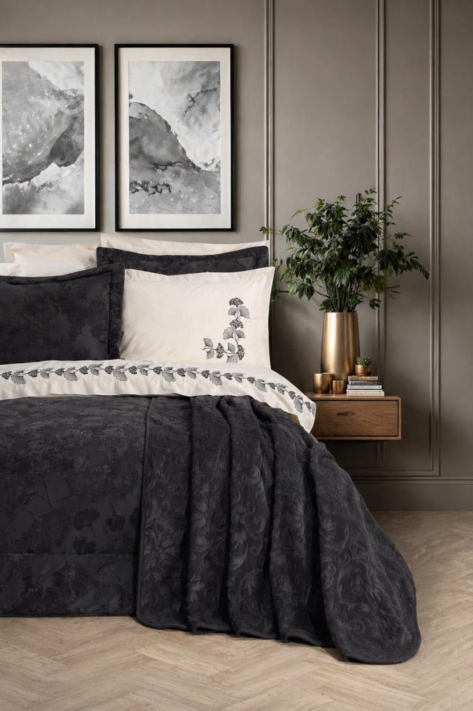 Yatak Örtüsü Kadife Kumaştan üretilmiştir. Nevresim takımı ise %100 Pamuk Akfil kumaştan üretilmiştir.