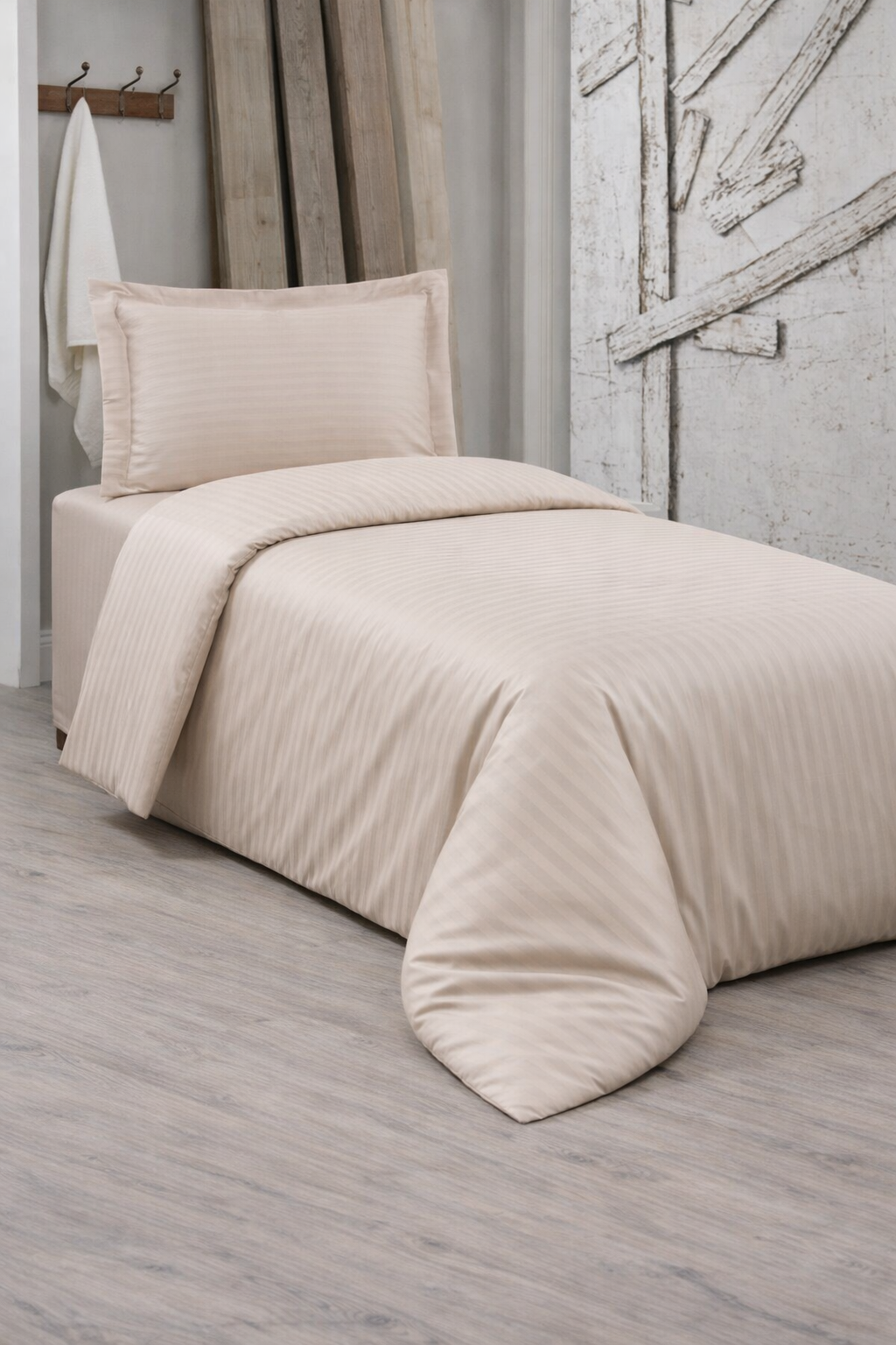 Çeyiz Diyarı Stripe Tek Kişilik PollySaten Nevresim Takımı Somon