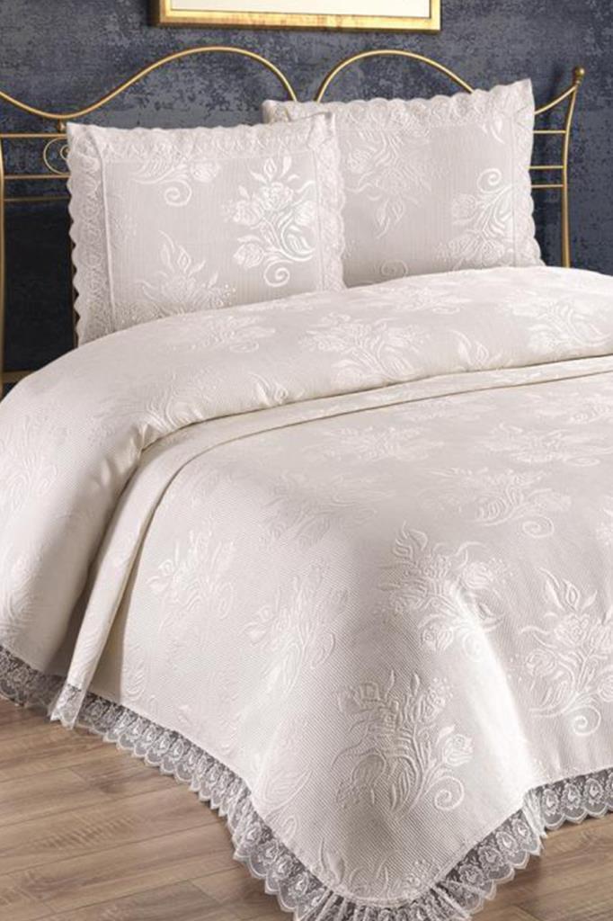 Çeyiz Diyarı Sümbül Çift Kişilik Yatak Örtüsü Krem