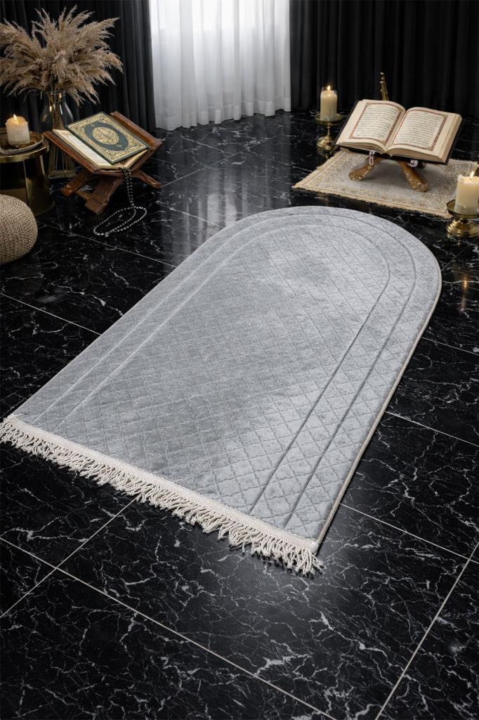 Çeyizdiyarı Nesibe Kadife Dolgulu Seccade Gri