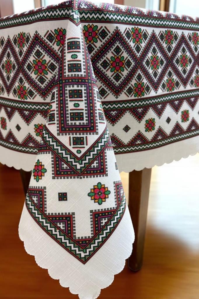 Doğadan ilham alan desenleri ve pratik kullanımıyla öne çıkan bu masa örtüsü,