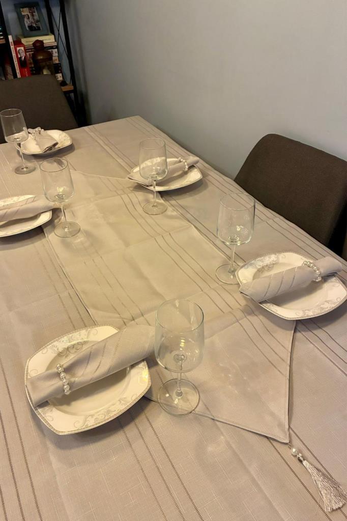 Colber 26 Parça Masa Örtüsü Takımı Gri