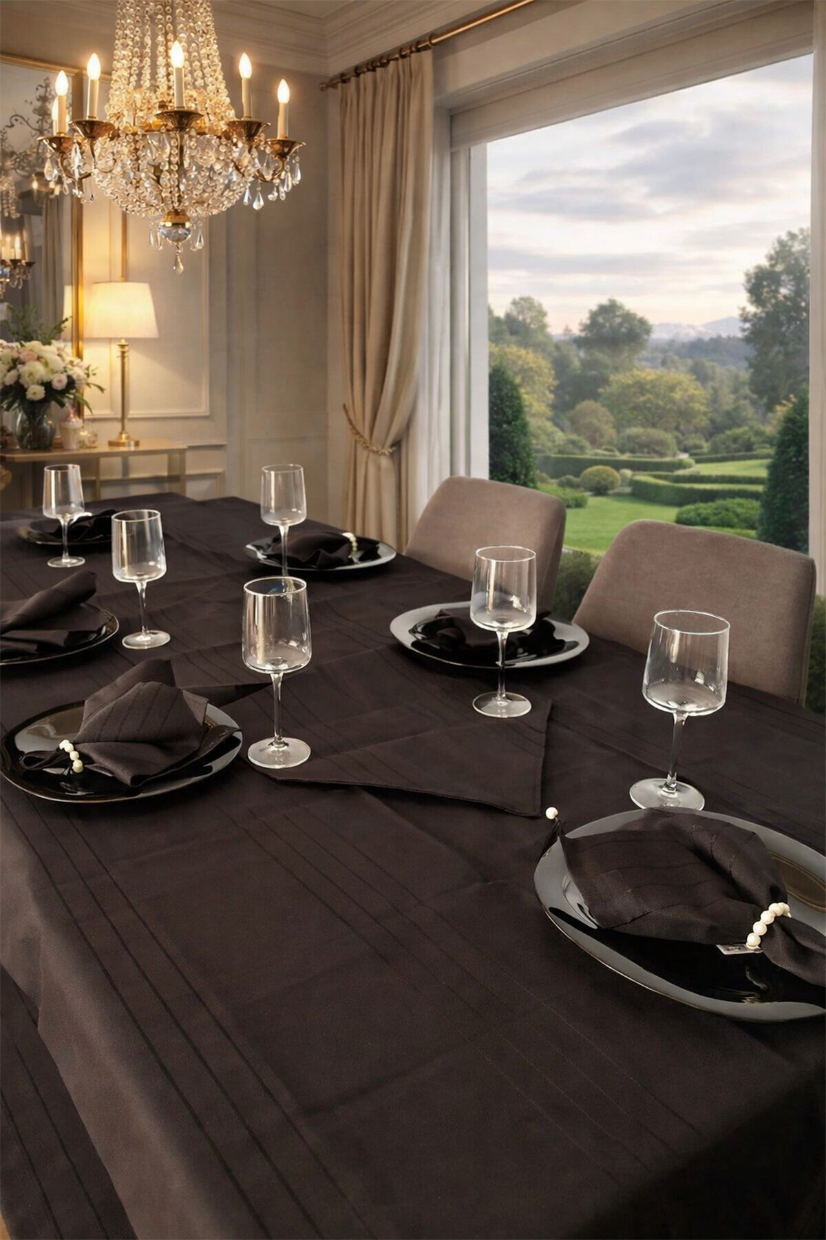 Colber 26 Parça Masa Örtüsü Takımı Siyah
