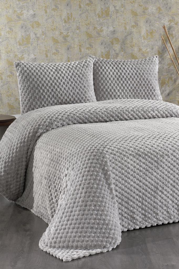 Cordoba Peluş Çift Kişilik Yatak Örtüsü Gri