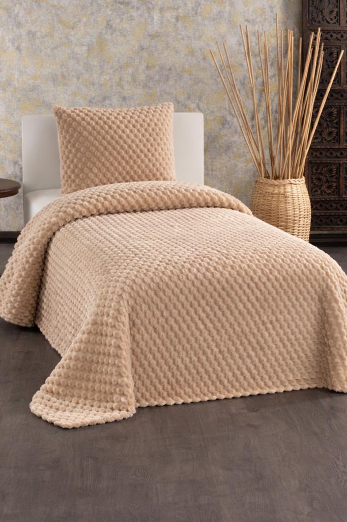 Cordoba Peluş Tek Kişilik Yatak Örtüsü Cappucino