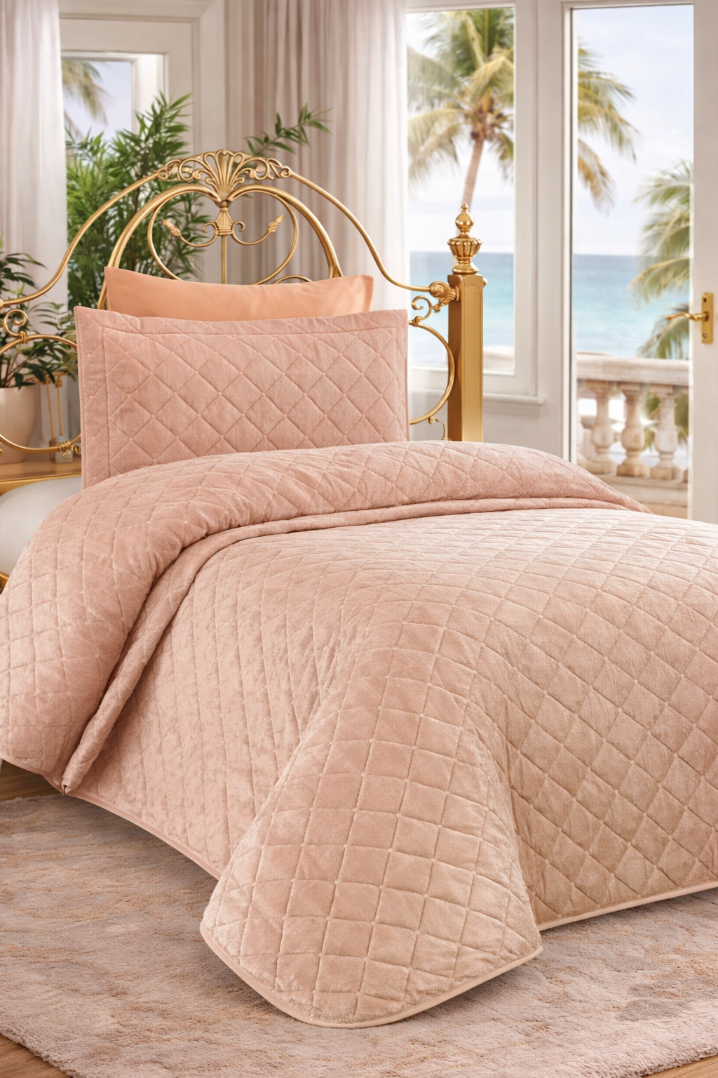 Dessert Kadife Tek Kişilik Yatak Örtüsü Pudra