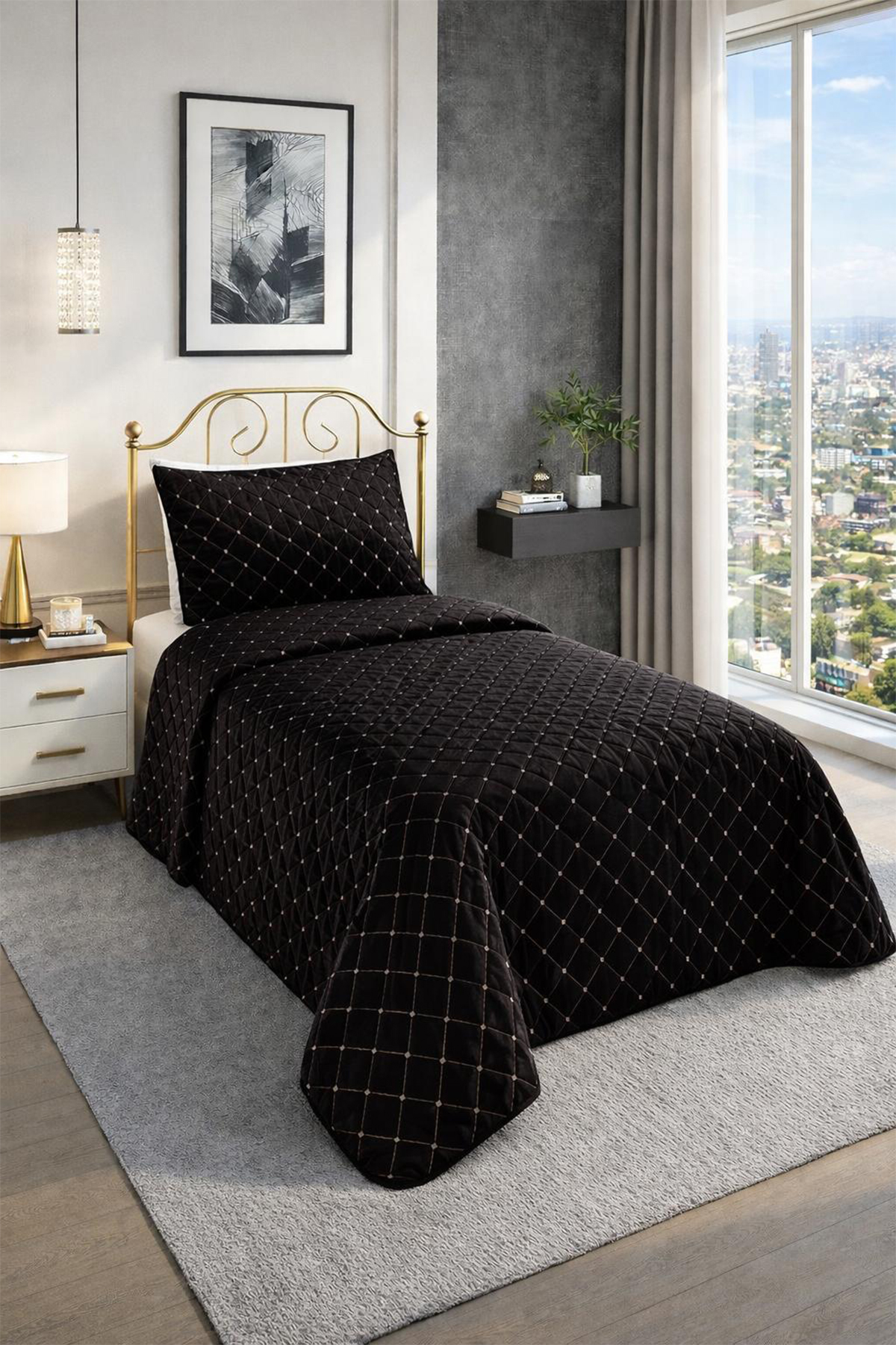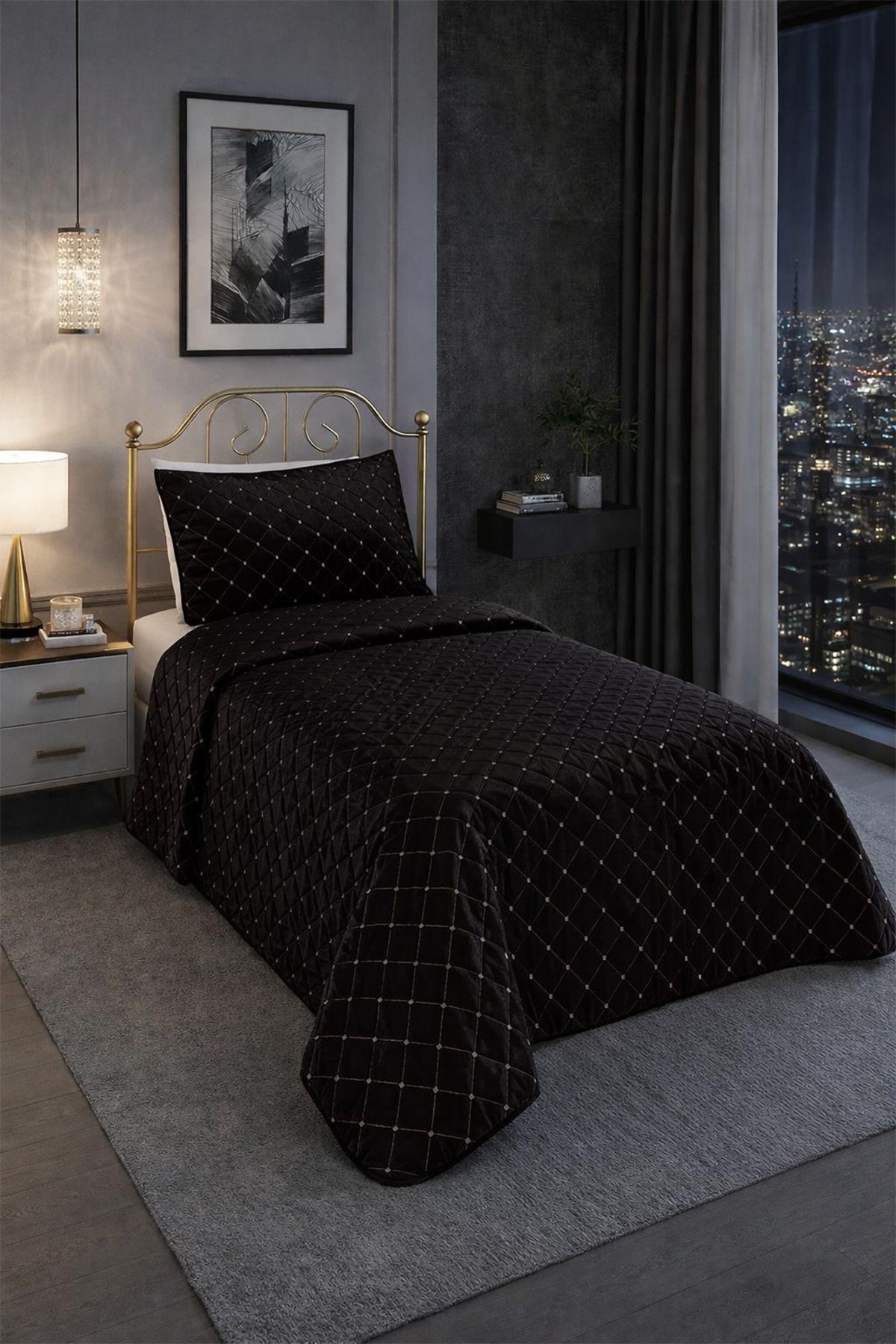 Dessert Kadife Tek Kişilik Yatak Örtüsü Siyah