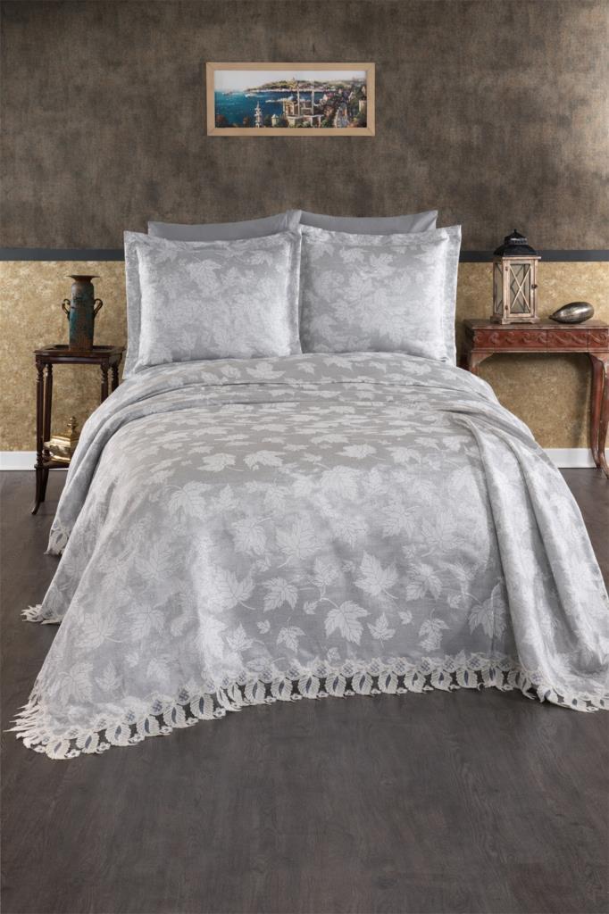 Dilara 3 Parça Çift Kişilik Pike Takımı Gri