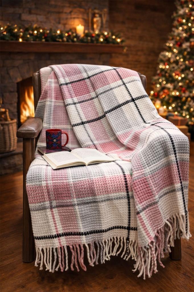 Bu çift kişilik pamuk battaniye, zarif ve farklı desenleriyle her türlü dekorasyona uyum sağlar.