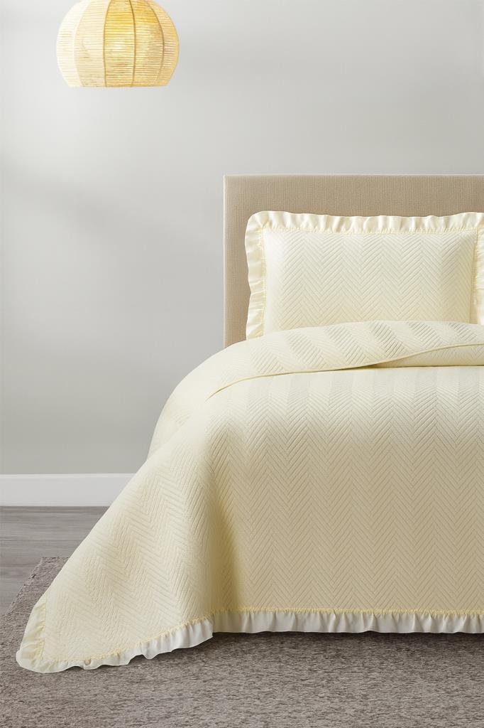 Dubai Elyaf Dolgulu Tek Kişilik 180x240 Cm Yatak Örtüsü Krem