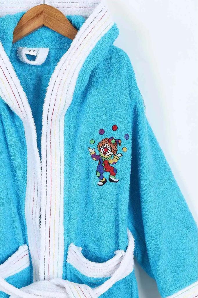 %100 pamuk kumaştan üretilmiş olan bu çocuk bornozu, 12–13 yaş aralığındaki çocuklar için özel olarak tasarlanmıştır.