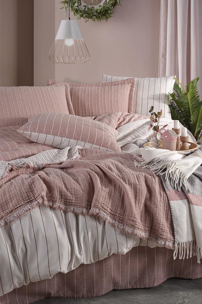 Nevresim takımı Akfil kumaştan üretilmiştir. Pike ve Pike kırlent kılıfları Pamuk Kumaştan Üretilmiştir.