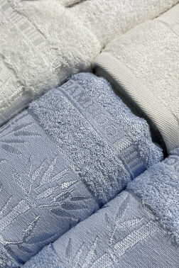 Elmas Bambu 10 Parça Aile Bornoz Takımı Krem Mavi