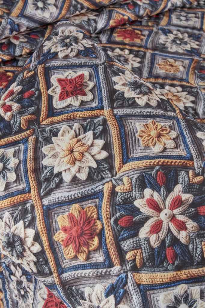 Floria Ultrasonik Kapitoneli 5D Baskılı Çift Kişilik Pike Takımı