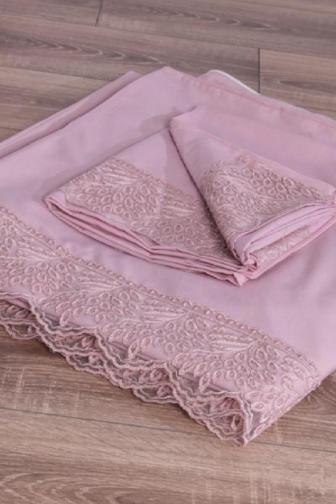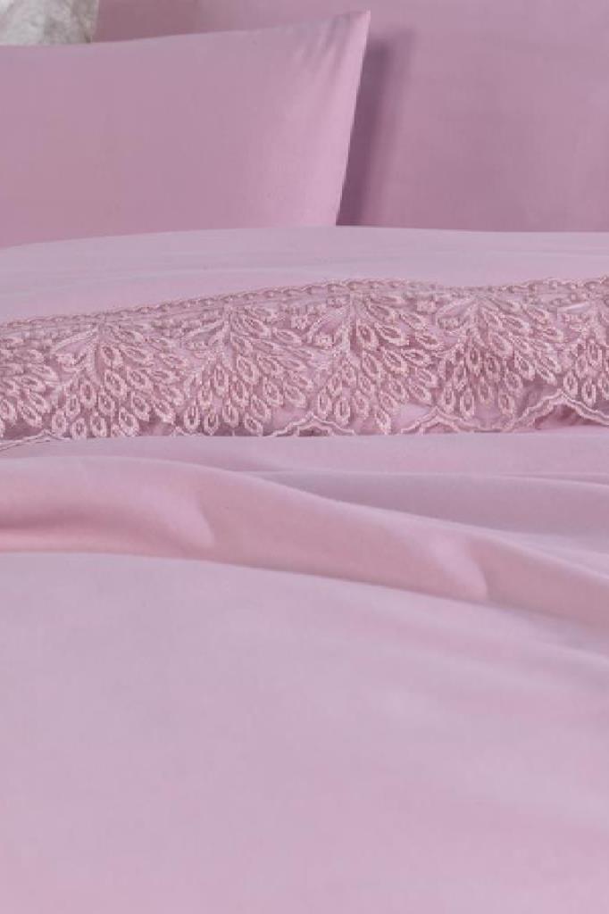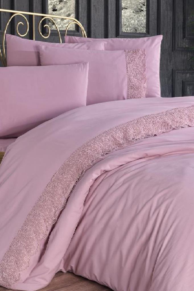 Fransız Dantelli Arduç Çeyizlik Nevresim Takımı Pudra