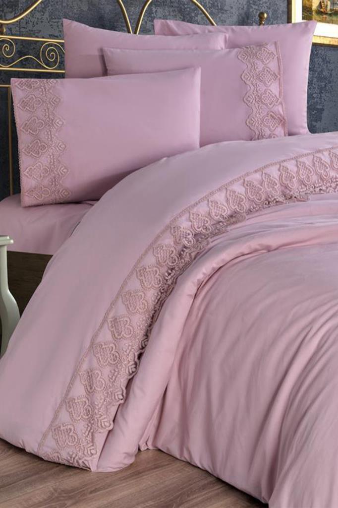 Pamuk Kumaştan üretilmiştir. Nevresim Ağızına Fransız Güpürü Dikilerek Özel Bir Tasarım Oluşturulmuştur.