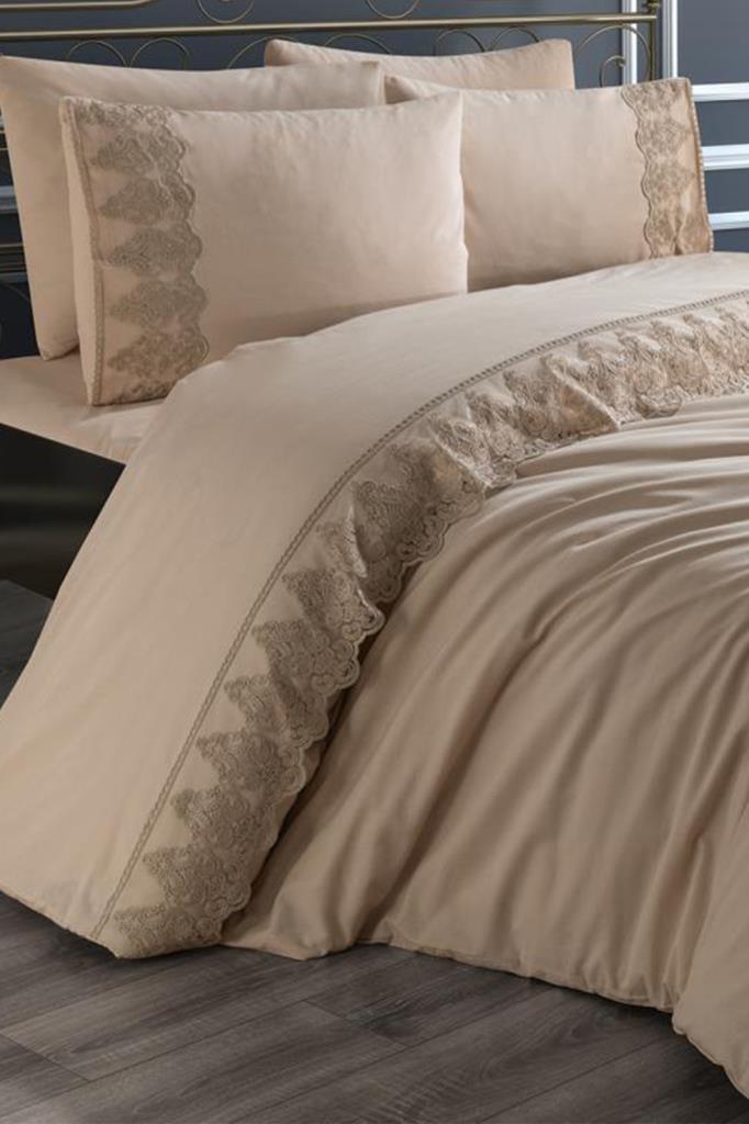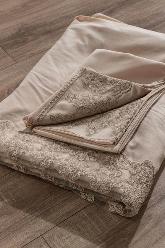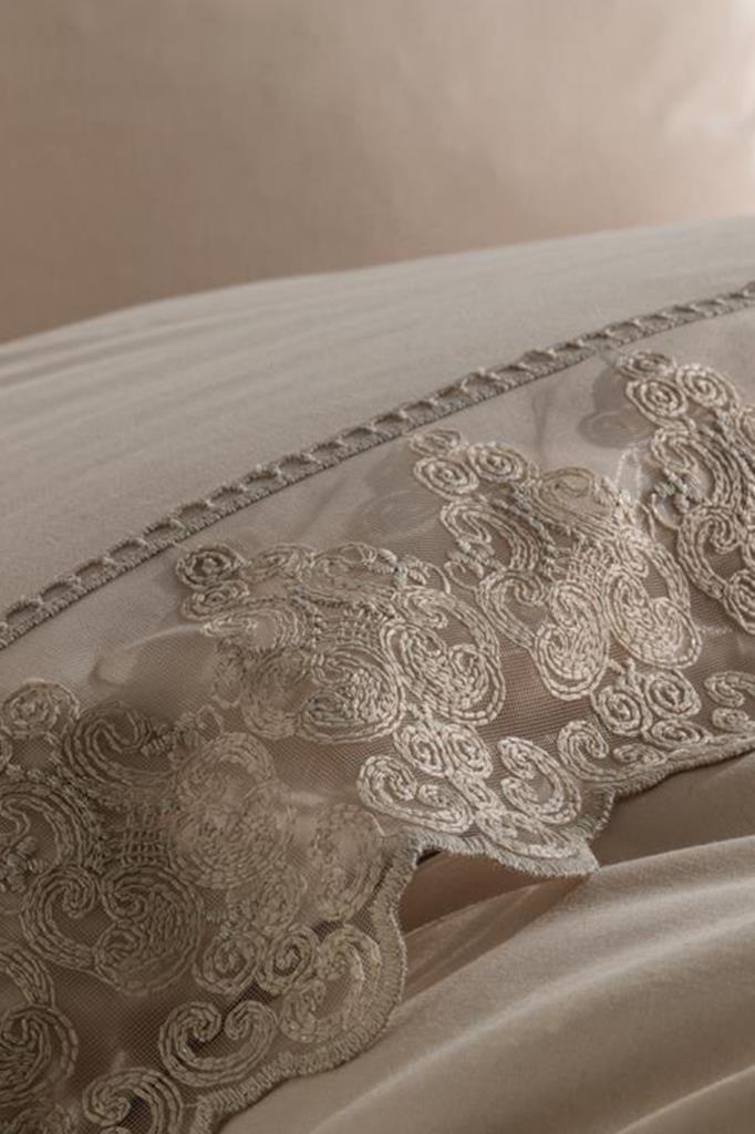 Fransız Dantelli Legend Çeyizlik Nevresim Takımı Cappucino