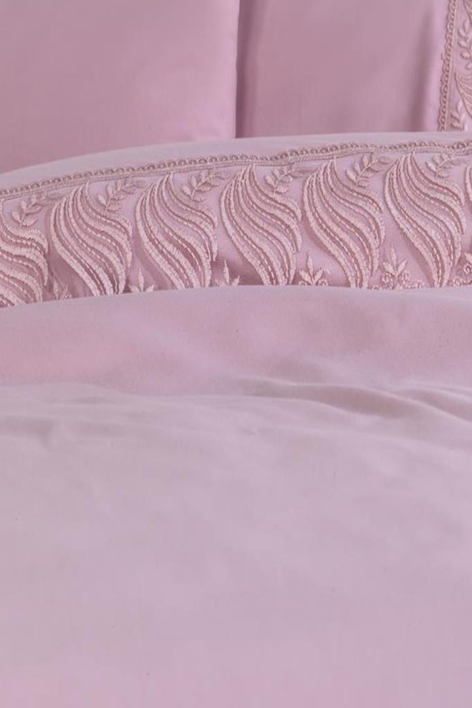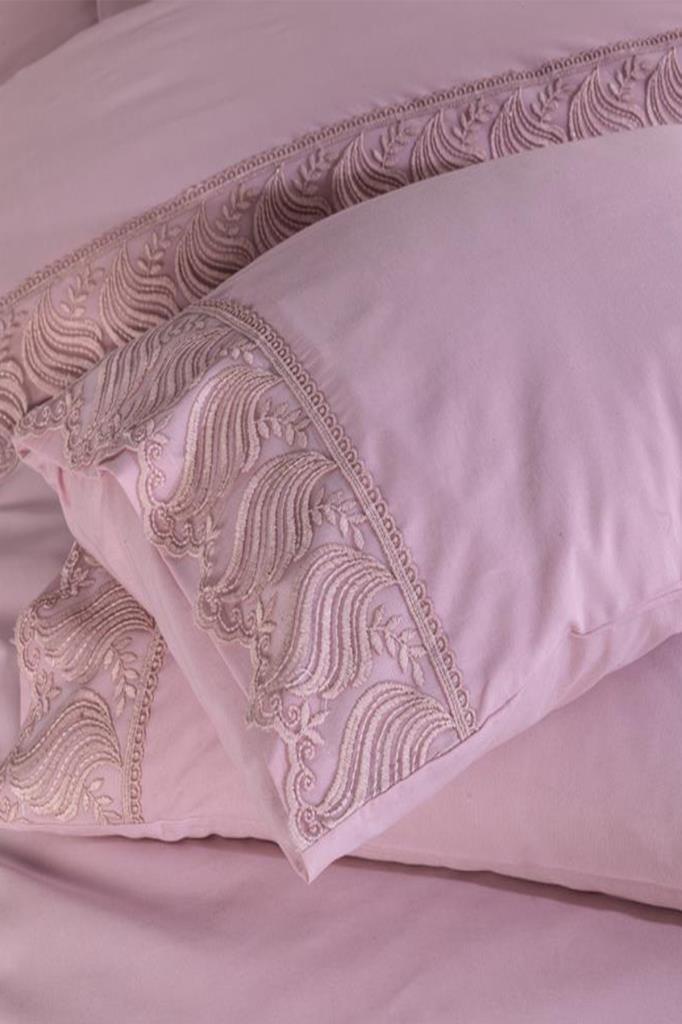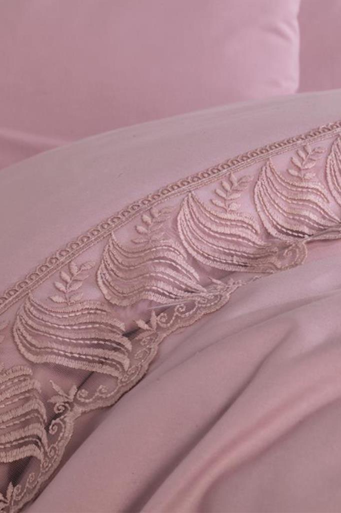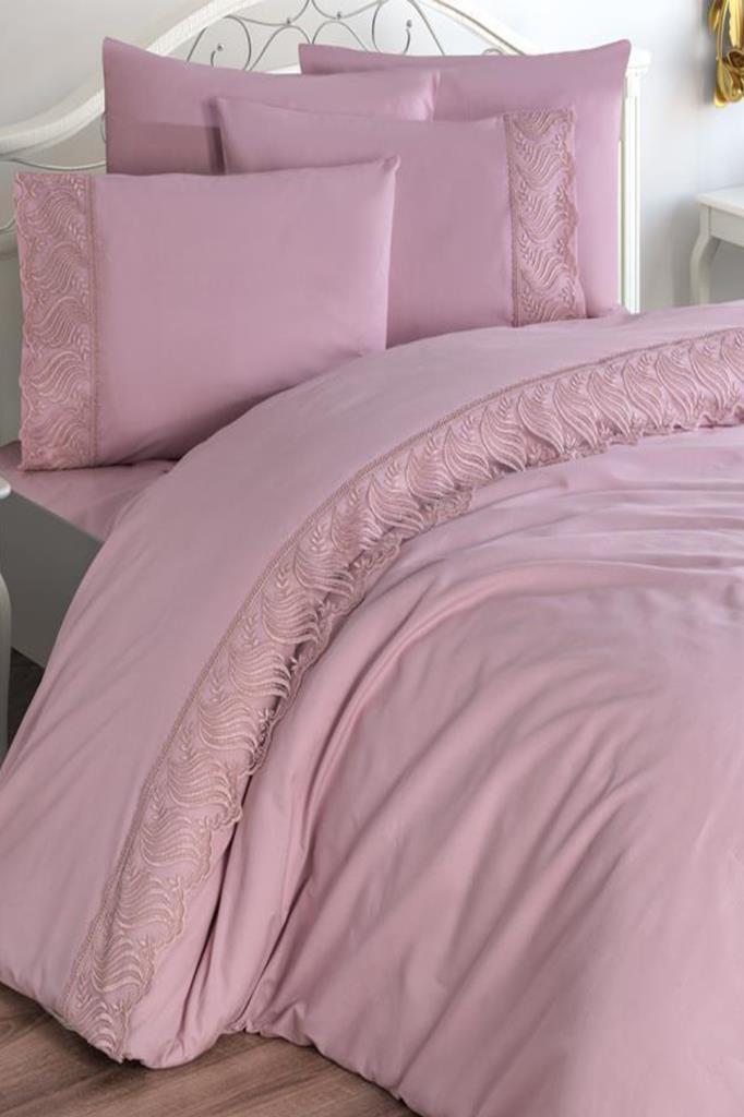 Fransız Dantelli Wave Çeyizlik Nevresim Takımı Pudra