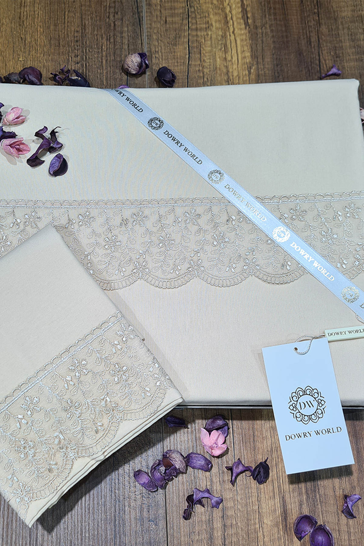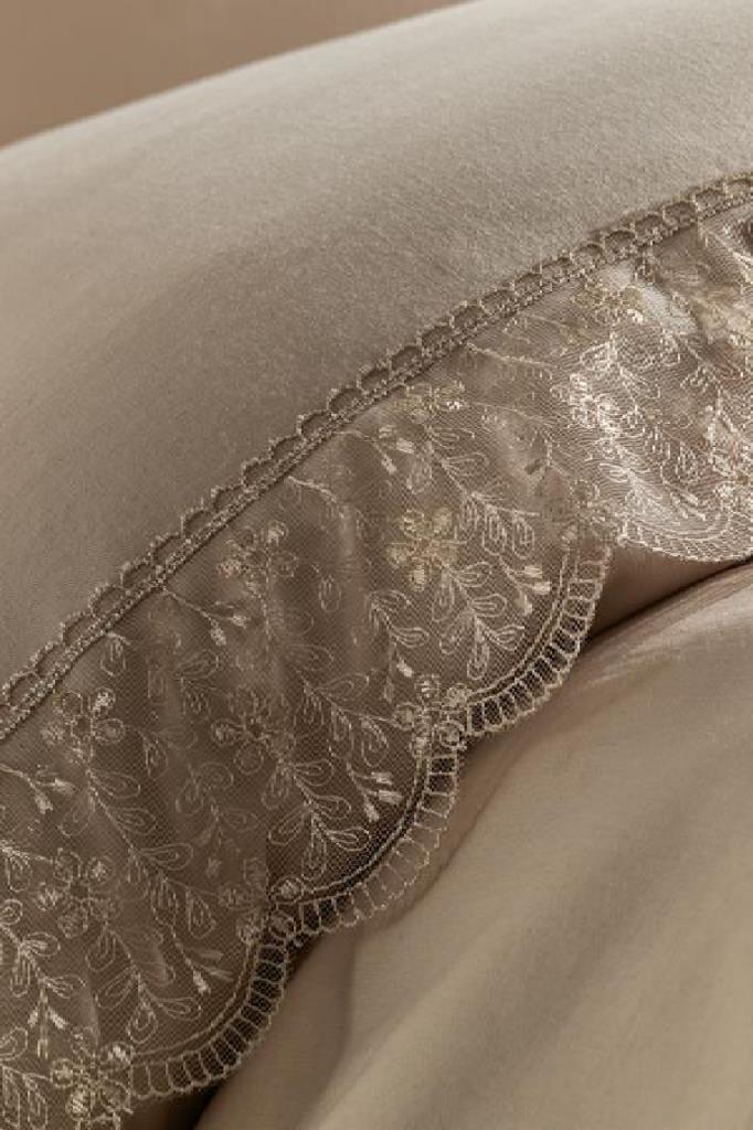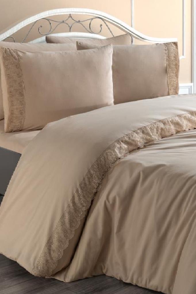 Fransız Dantelli Yonca Çeyizlik Nevresim Takımı Cappucino