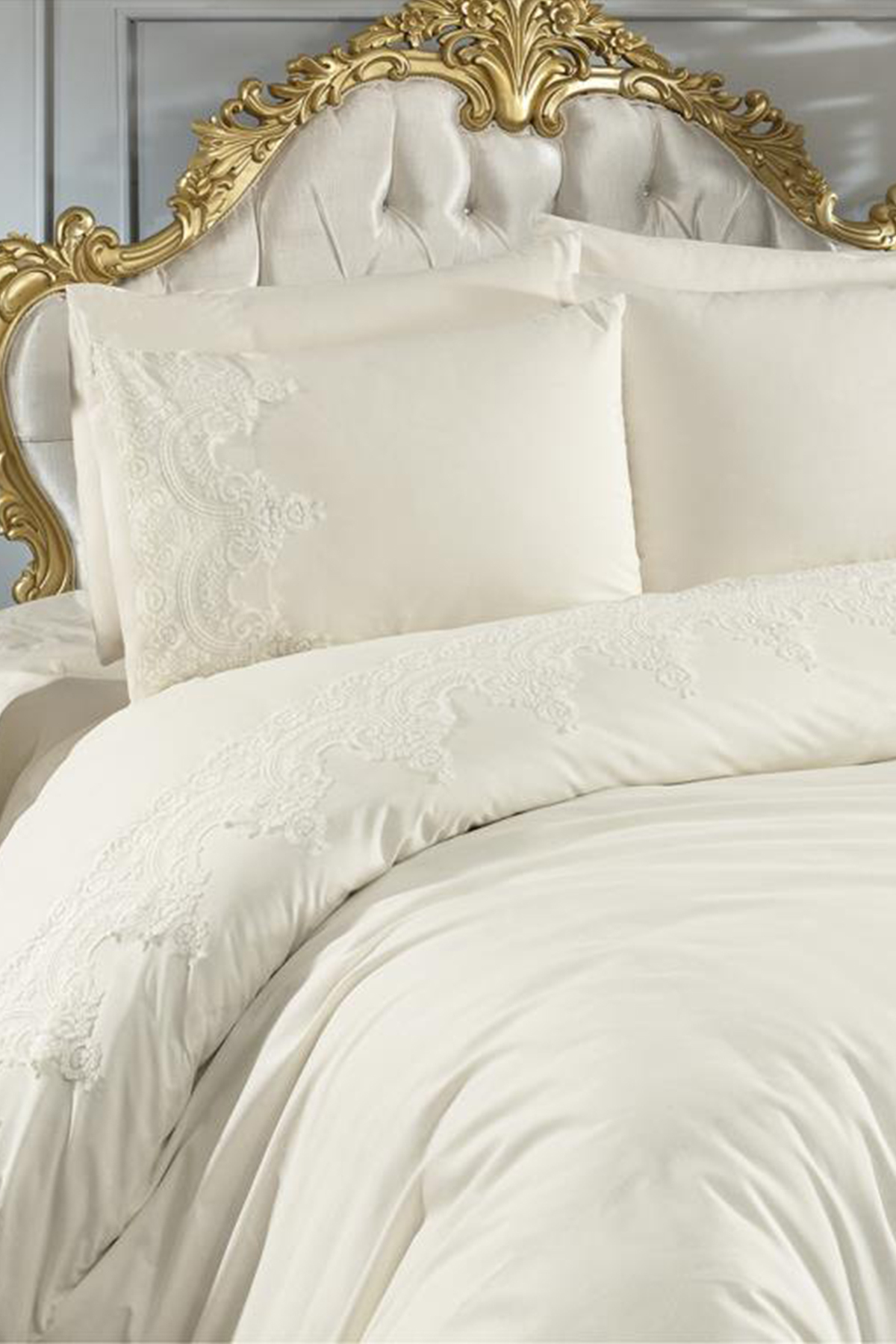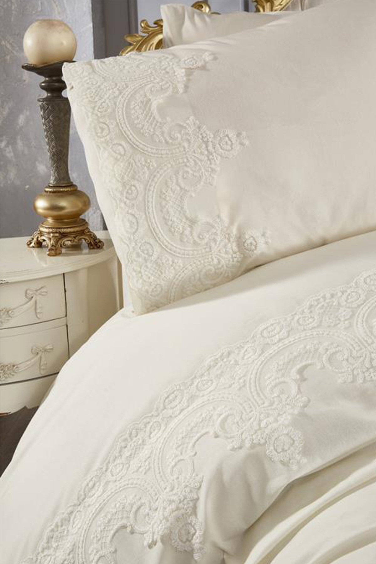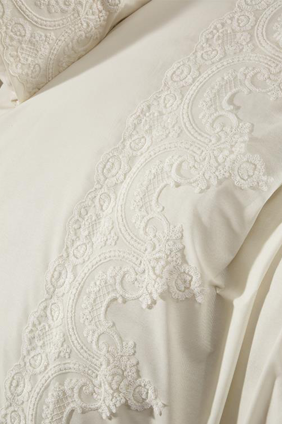Fransız Güpürlü Sultans Nevresim Takımı Krem