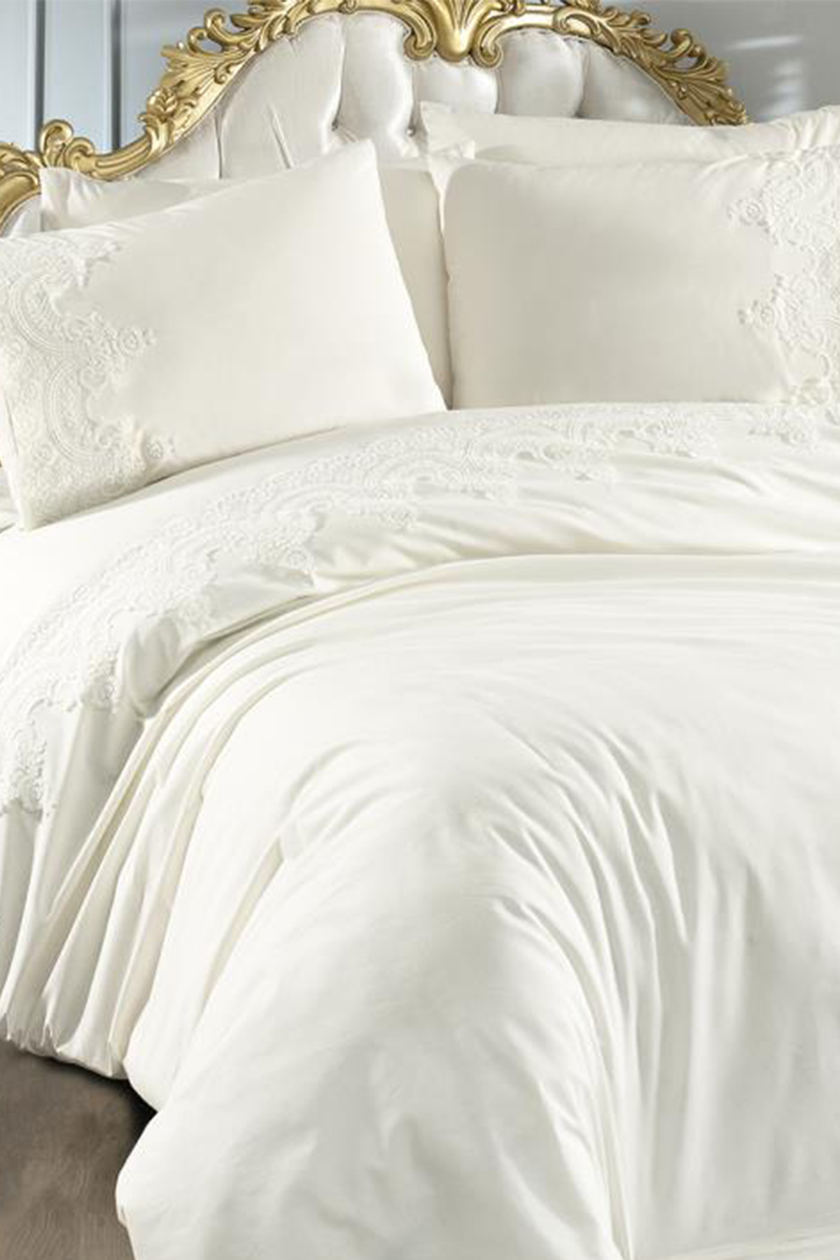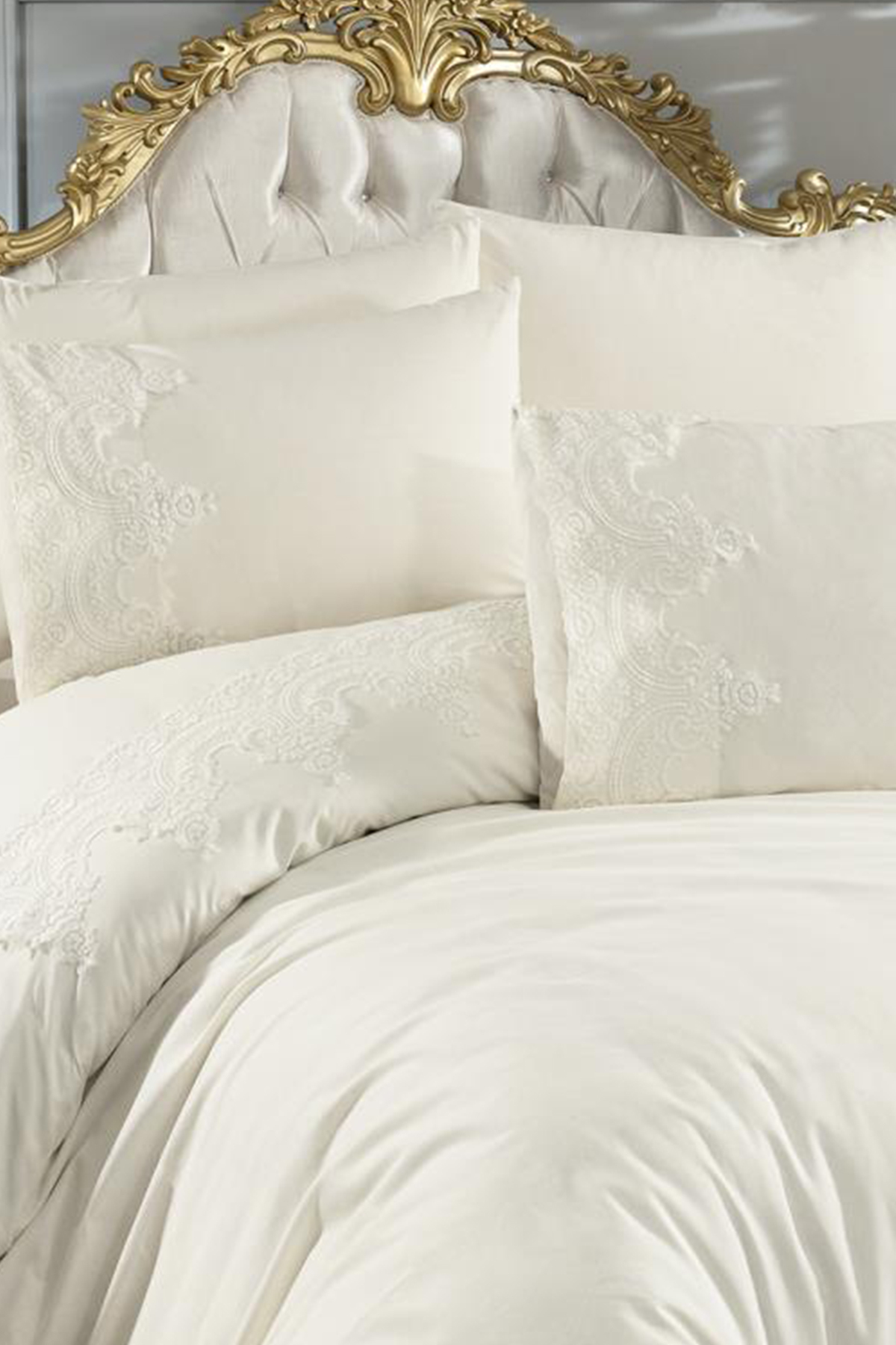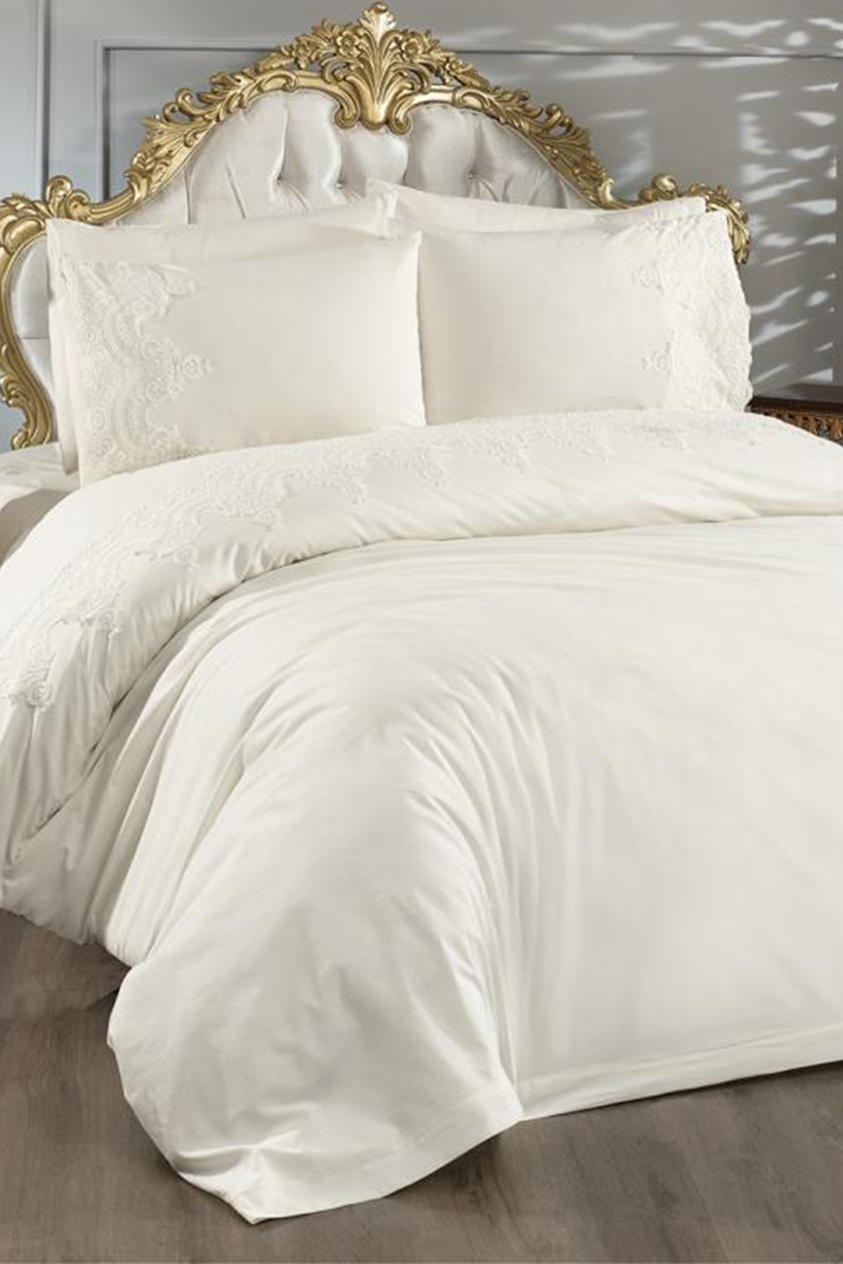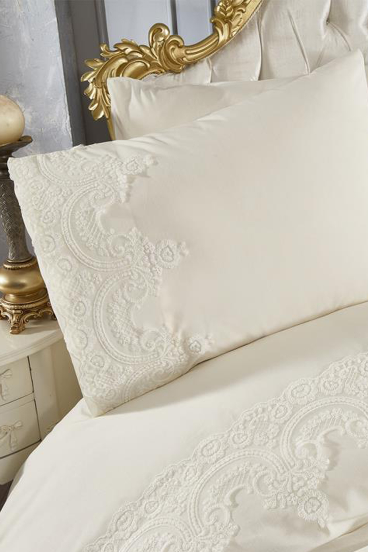 Fransız Güpürlü Sultans Nevresim Takımı Krem