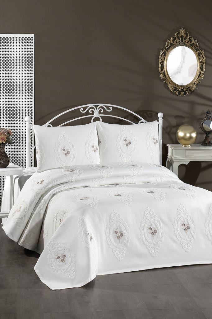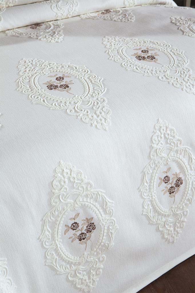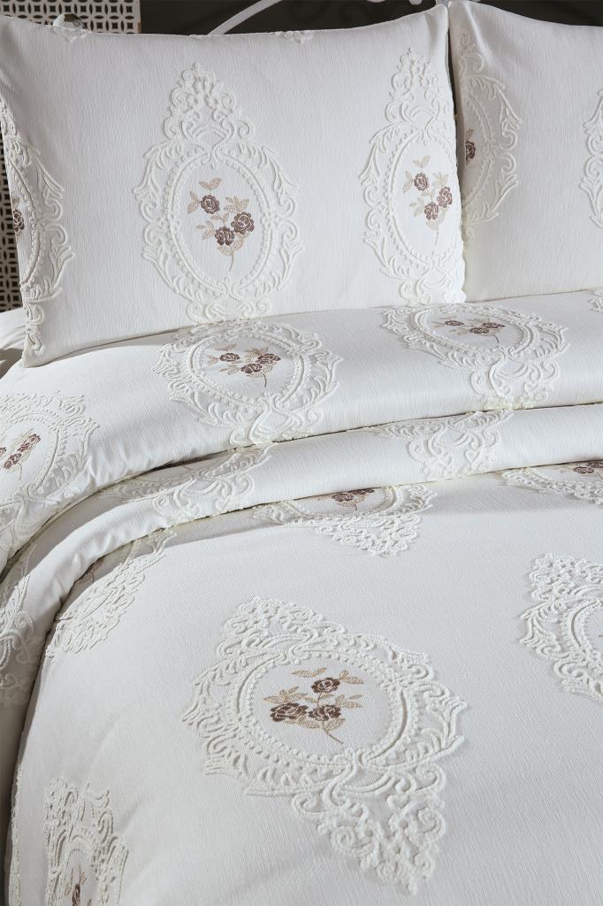 Gardenlove Nakışlı Şönil 3 Parça Çift Kişilik Yatak Örtüsü Bej