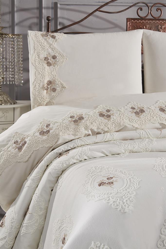 Yatak Örtüsü Şönil Kumaştan üretilmiştir. Nevresim takımı %100 Pamuk kumaştan üretilmiştir.