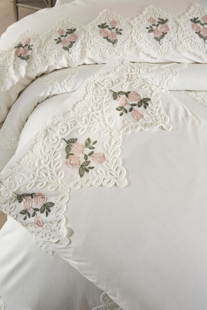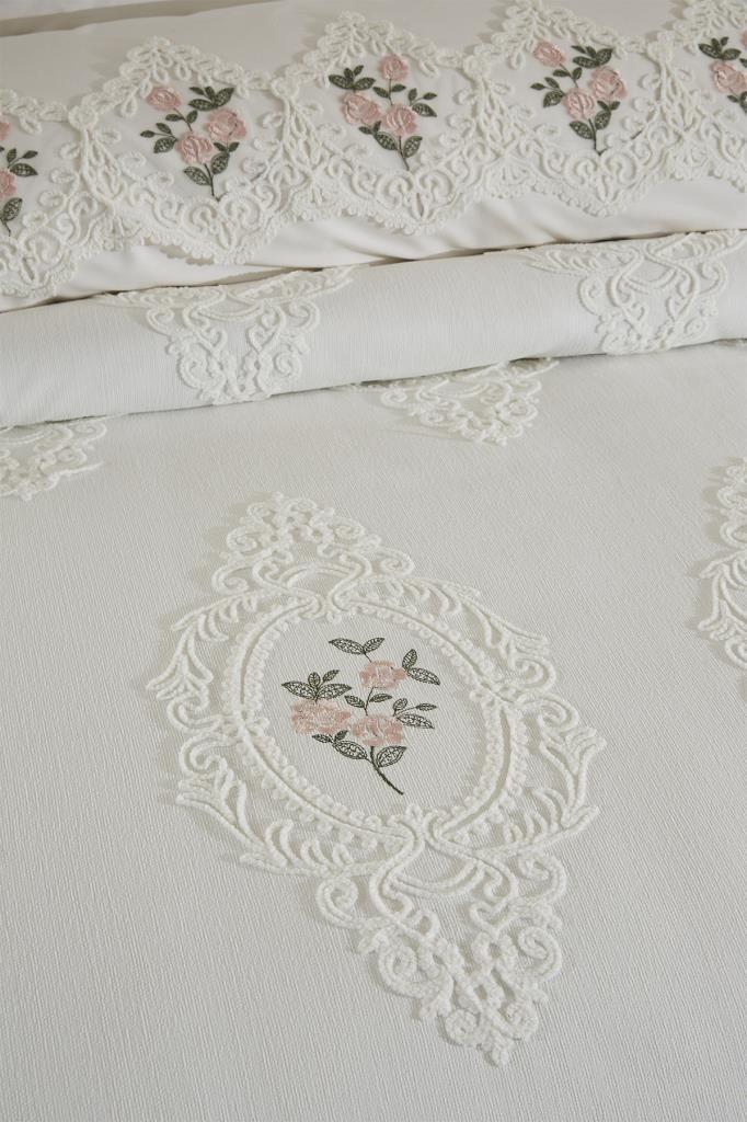 Yatak Örtüsü Şönil Kumaştan üretilmiştir. Nevresim takımı %100 Pamuk kumaştan üretilmiştir.