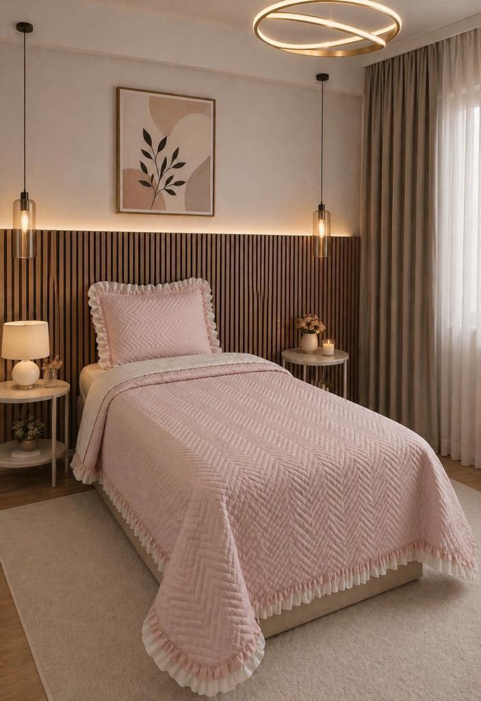 Gonca Çift Taraflı Tek Kişilik Yatak Örtüsü 180x240 Cappucino