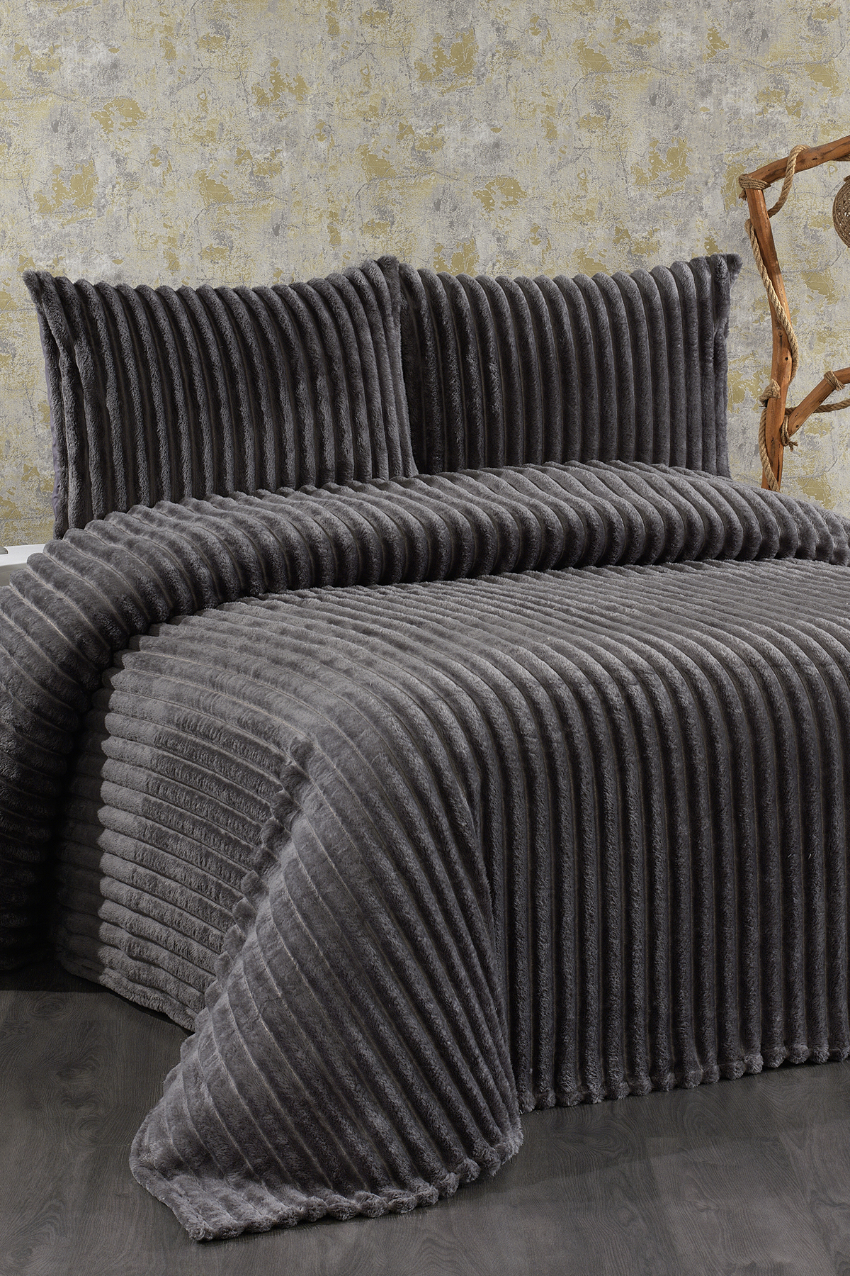 Granada Peluş Çift Kişilik Yatak Örtüsü Antrasit