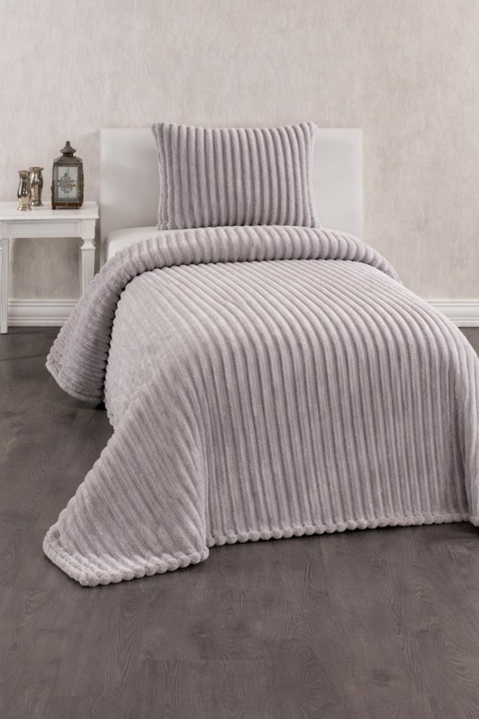 Granada Peluş Tek Kişilik Yatak Örtüsü Gri
