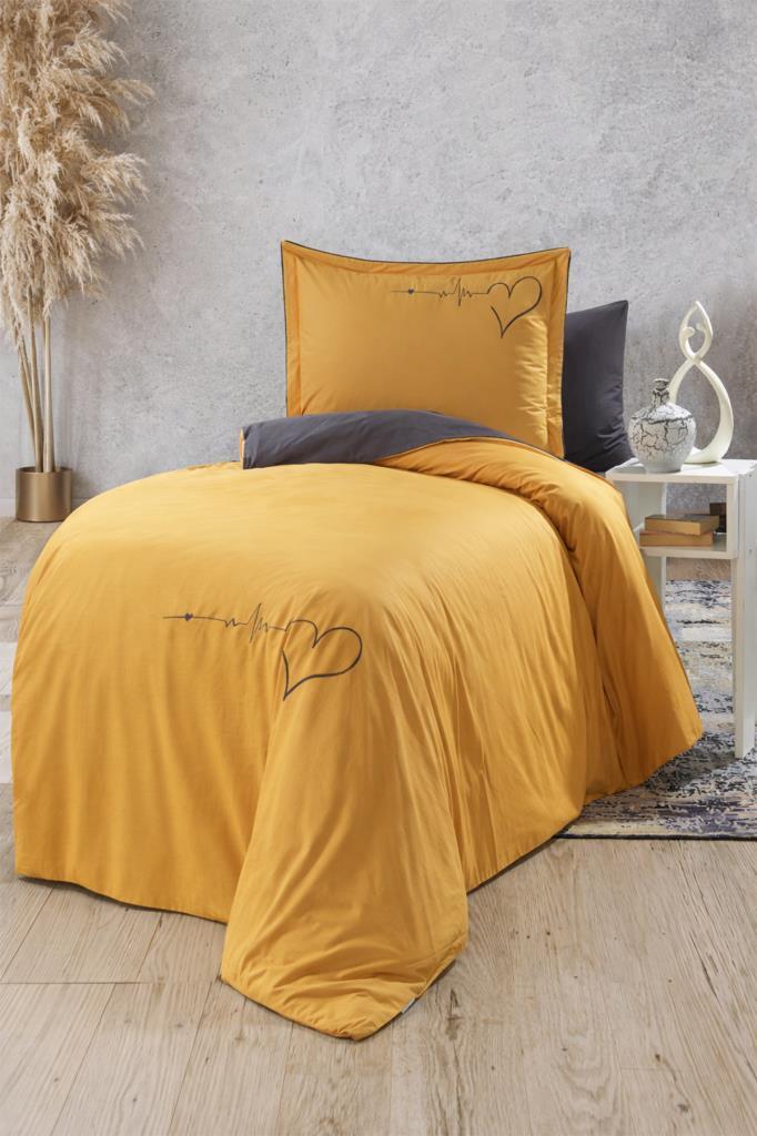 Heart Çift Taraflı Tek Kişilik Nevresim Takımı Hardal